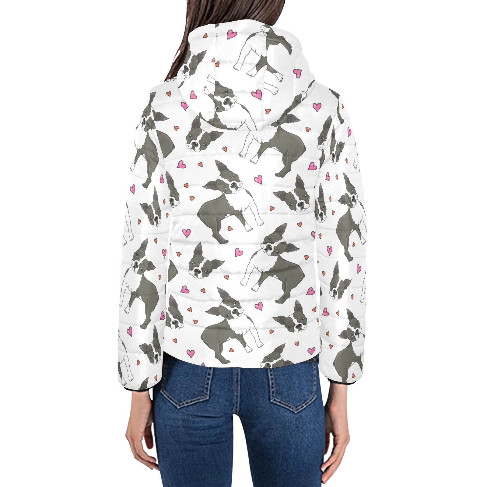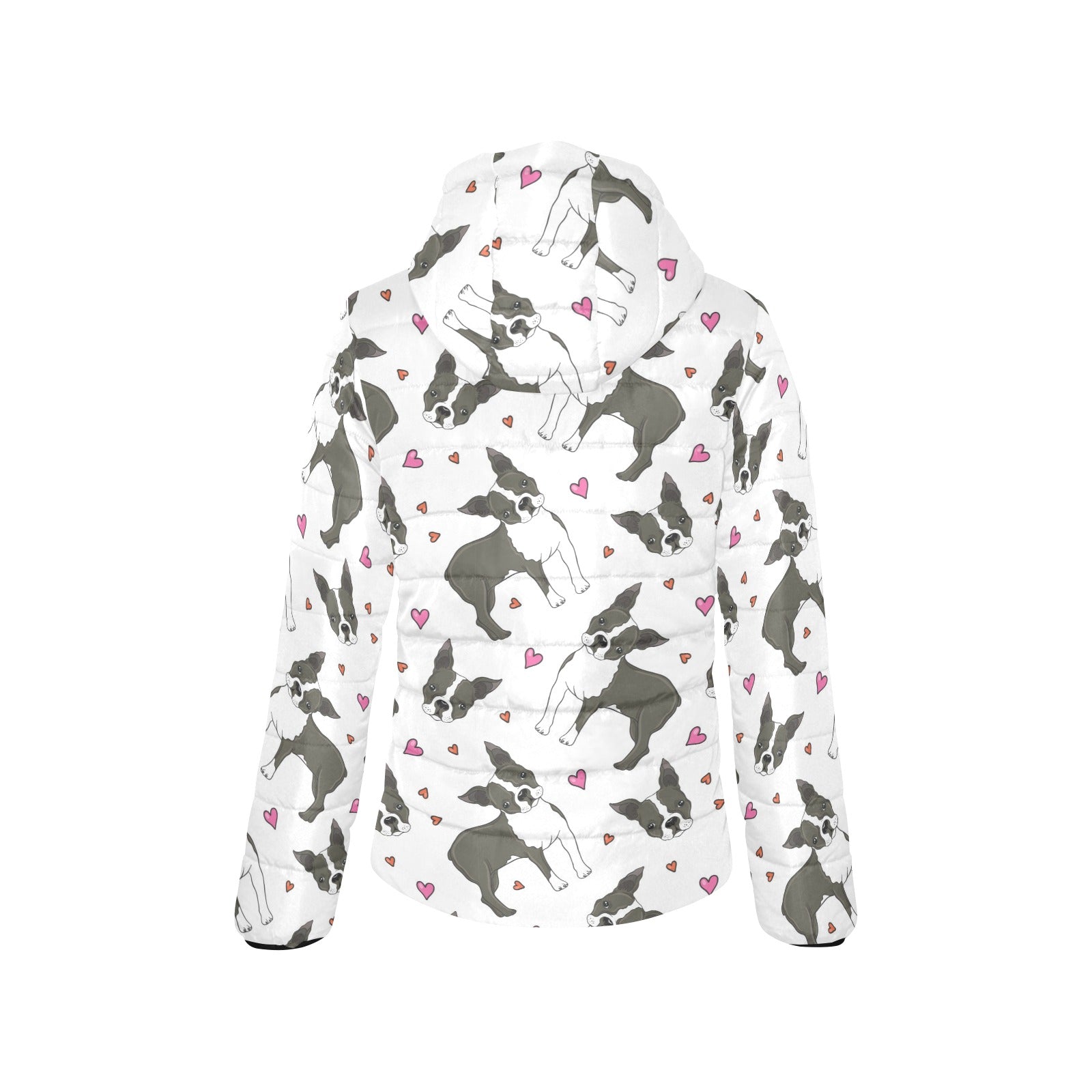 Boston terrier dog hearts vector pattern Women's Padded Hooded Jacket