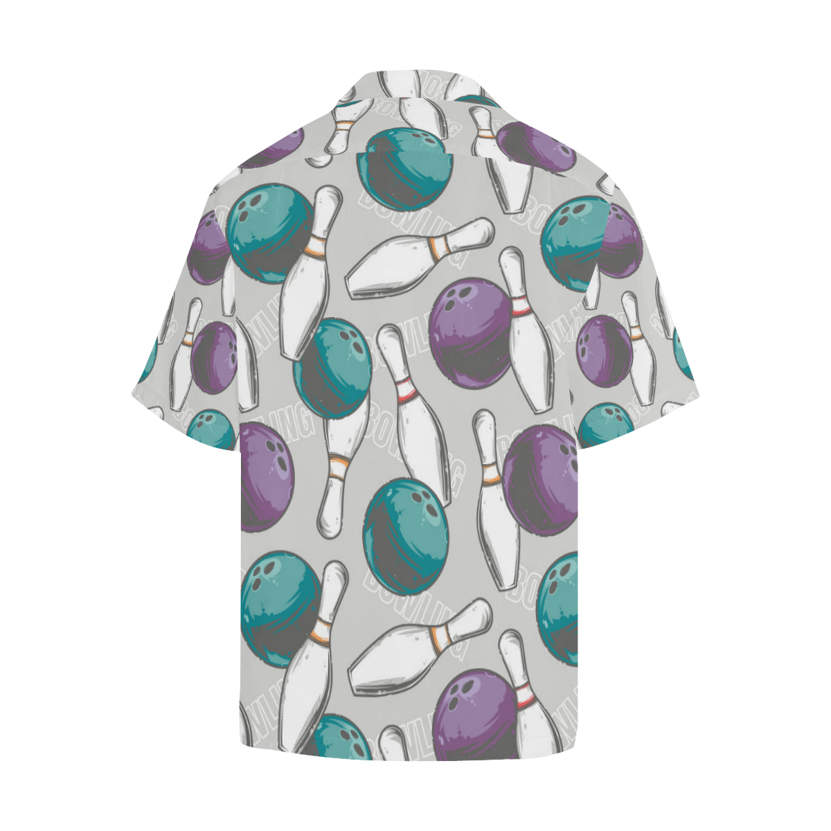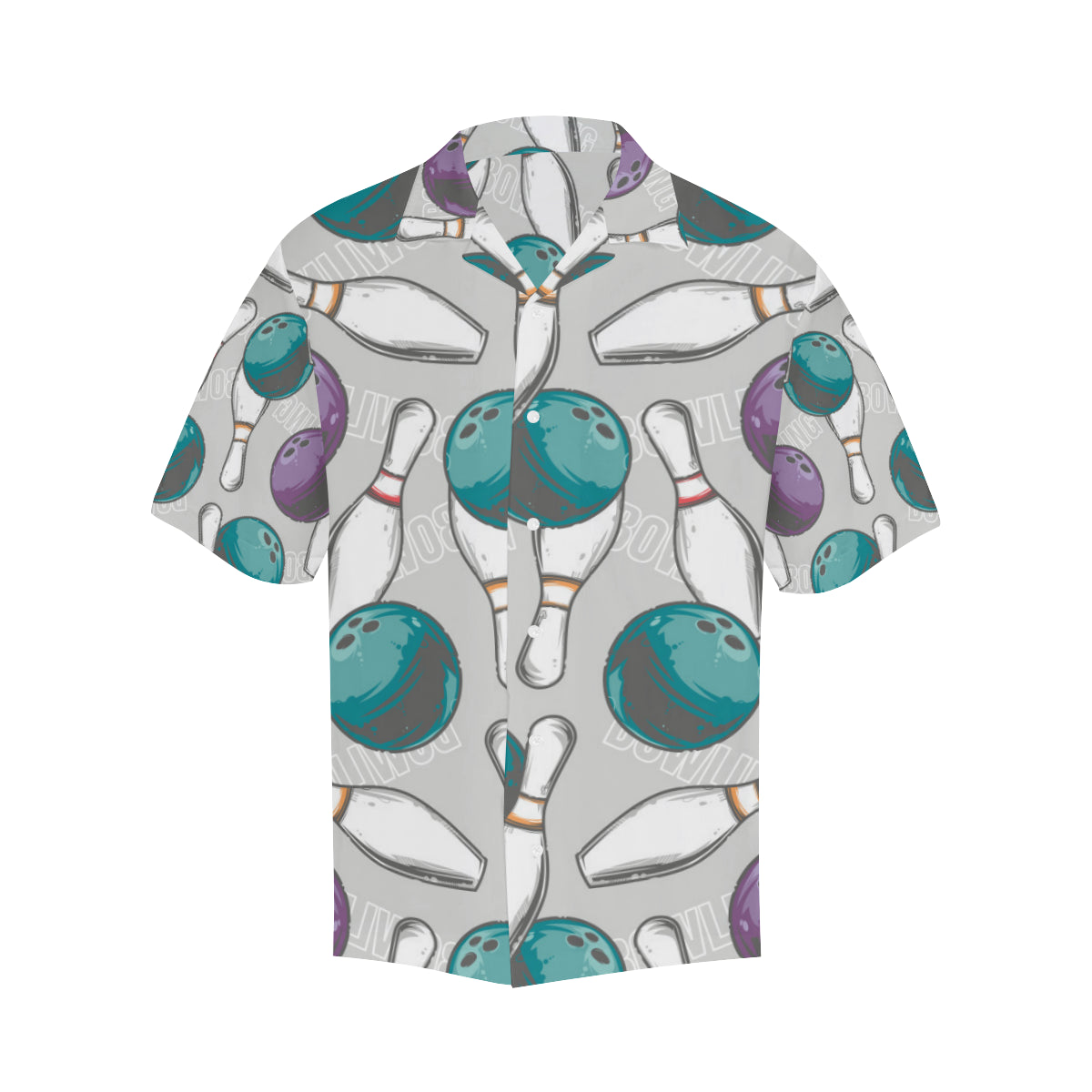 Bowling ball and pin gray background Men's All Over Print Hawaiian Shirt is a uniqued design and limited item. It made to order, hand printed, and sewn with love in our factory.