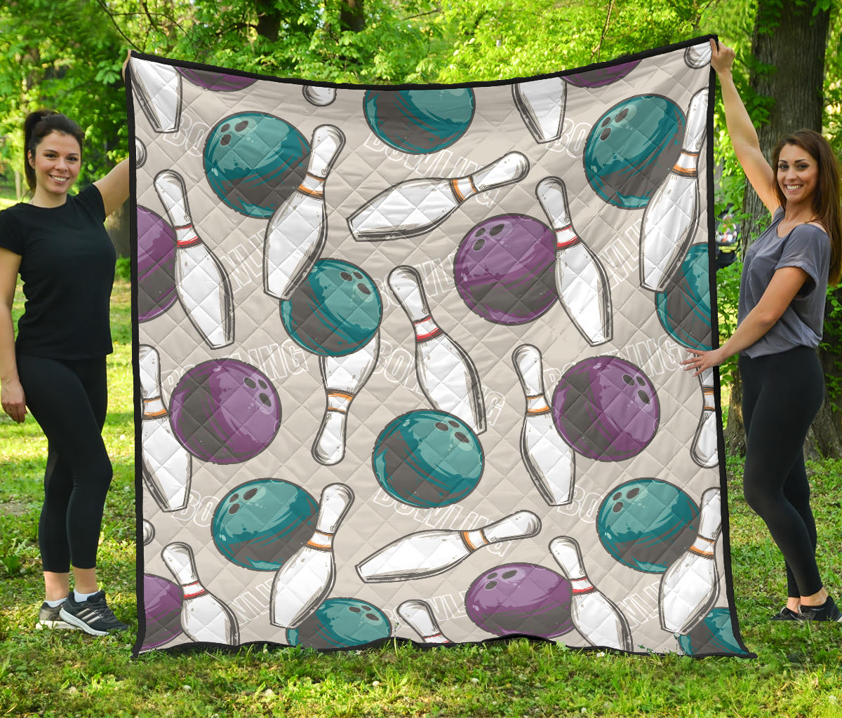 Bowling Ball And Pin Gray Background Premium Quilt is a uniqued design and limited item. It made to order, hand printed, and sewn with love in our factory.