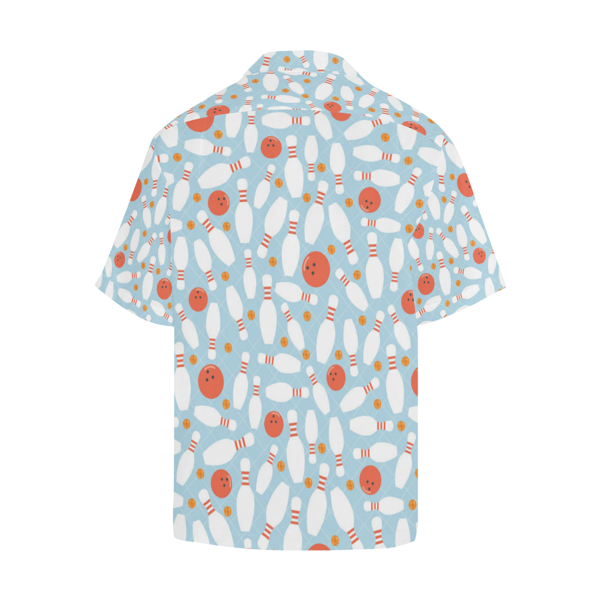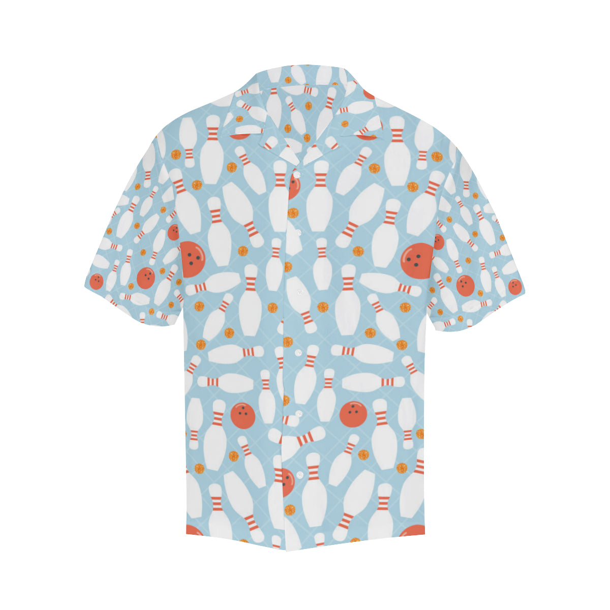 Bowling ball bowling pins blue blackground Men's All Over Print Hawaiian Shirt is a uniqued design and limited item. It made to order, hand printed, and sewn with love in our factory.