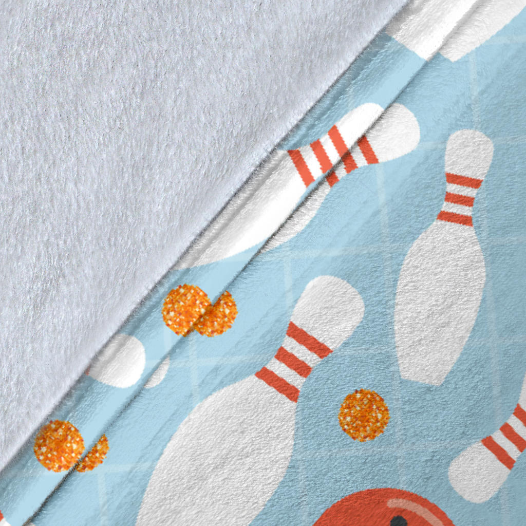 Bowling ball bowling pins blue blackground Premium Blanket is a uniqued design and limited item. It made to order, hand printed, and sewn with love in our factory.