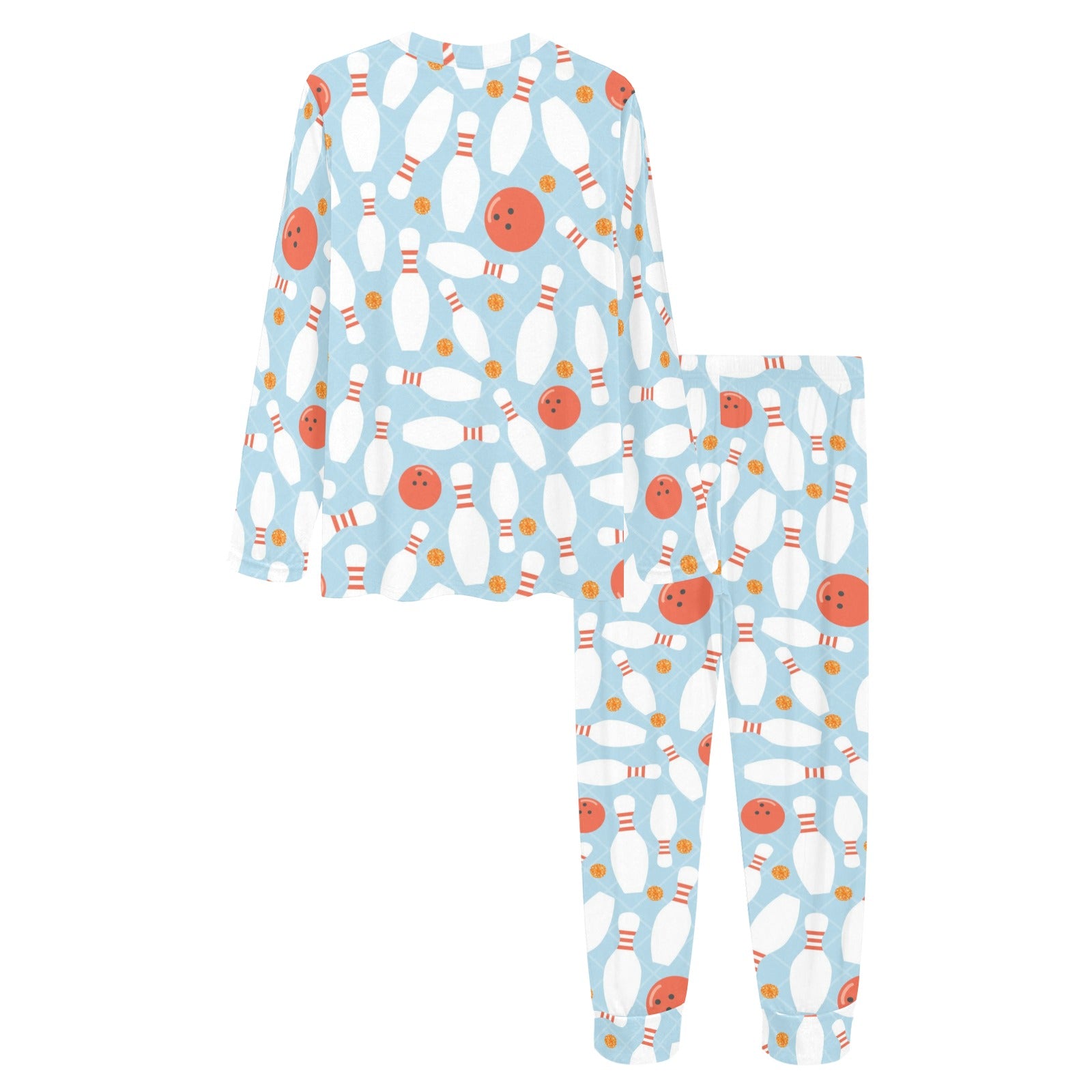 Bowling ball bowling pins blue blackground Women's All Over Print Pajama Set
