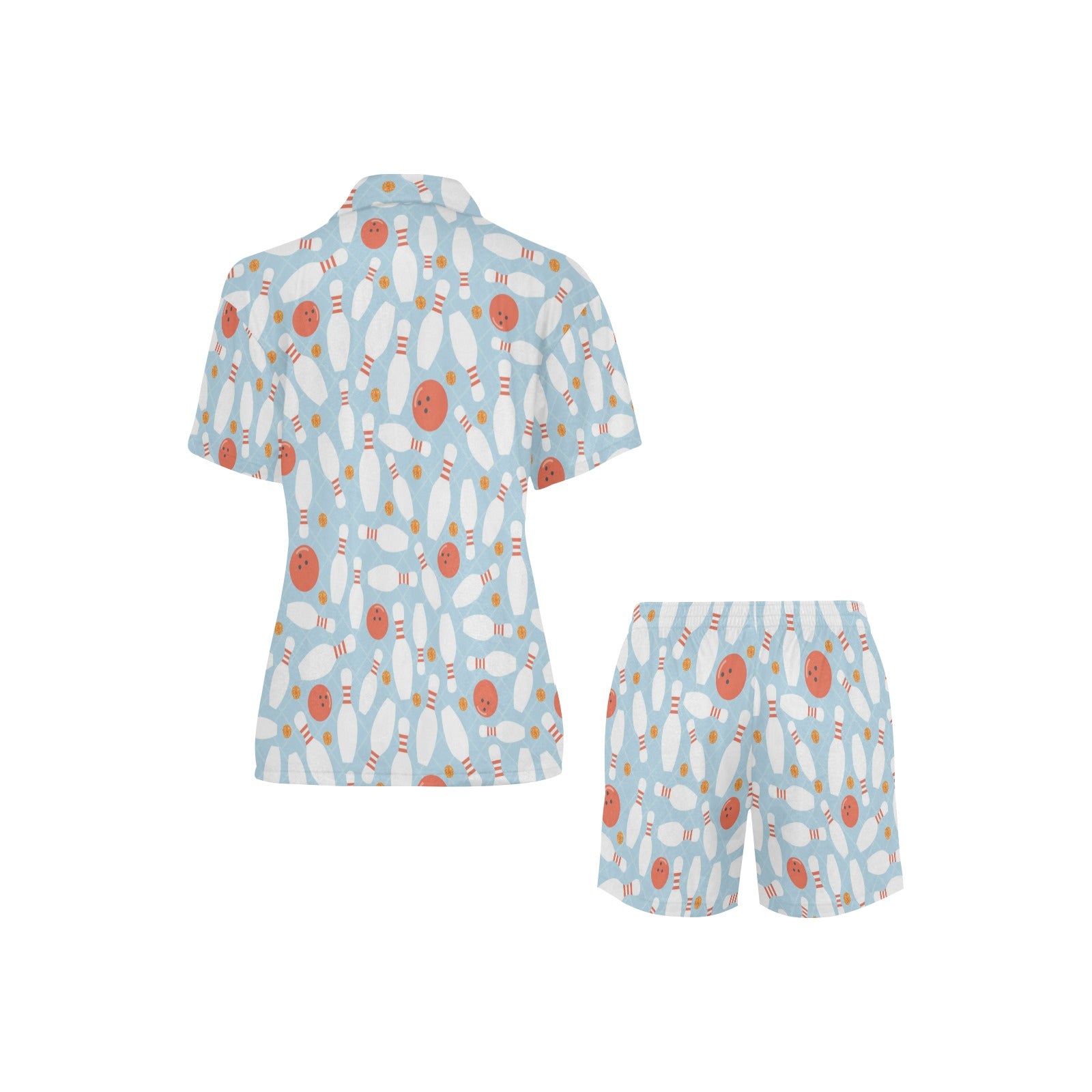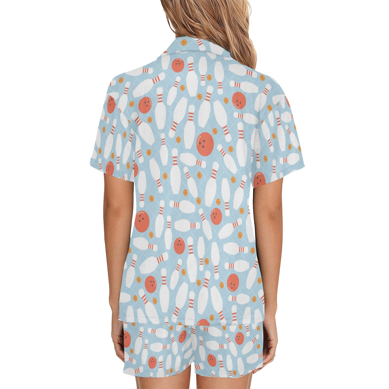 Bowling ball bowling pins blue blackground Women's V-Neck Short Pajama Set