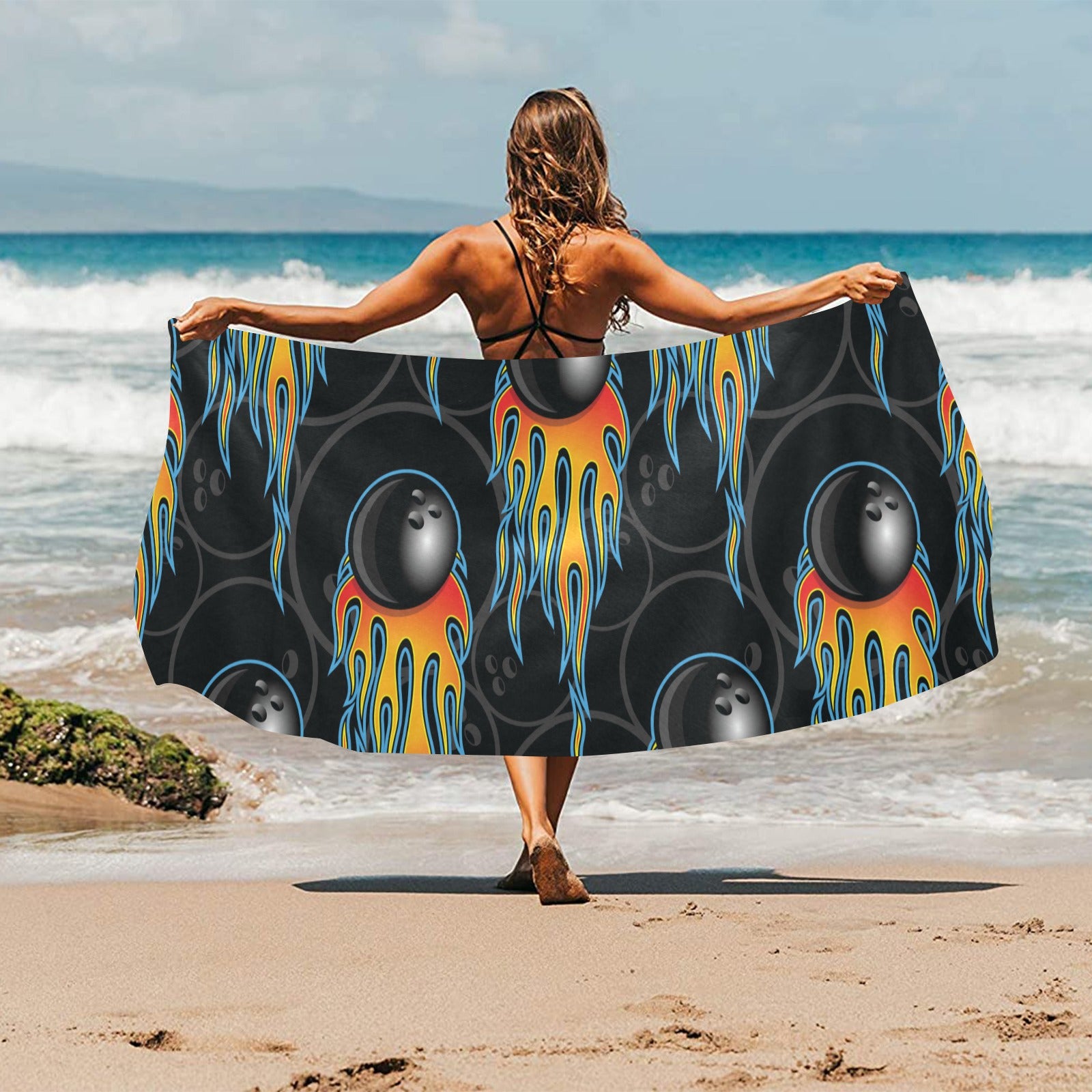 Bowling balls flame pattern Beach Towel