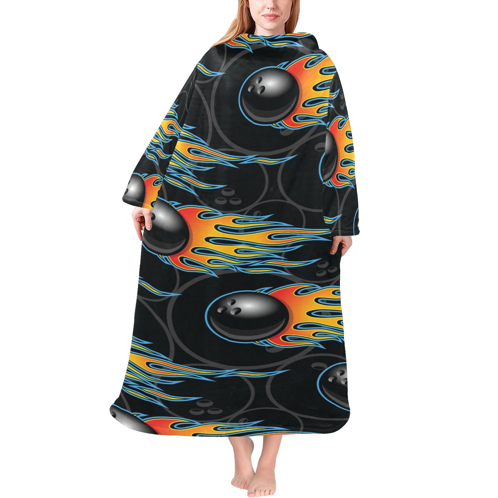 Bowling balls flame pattern Blanket Robe with Sleeves