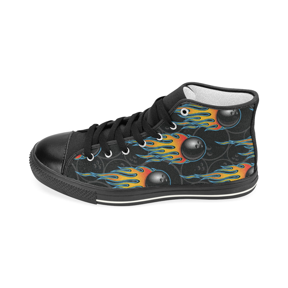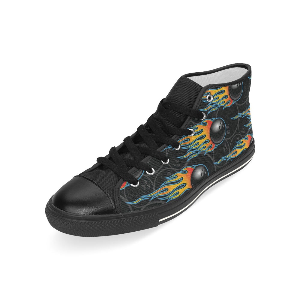 Bowling balls flame pattern Men's High Top Canvas Shoes Black
