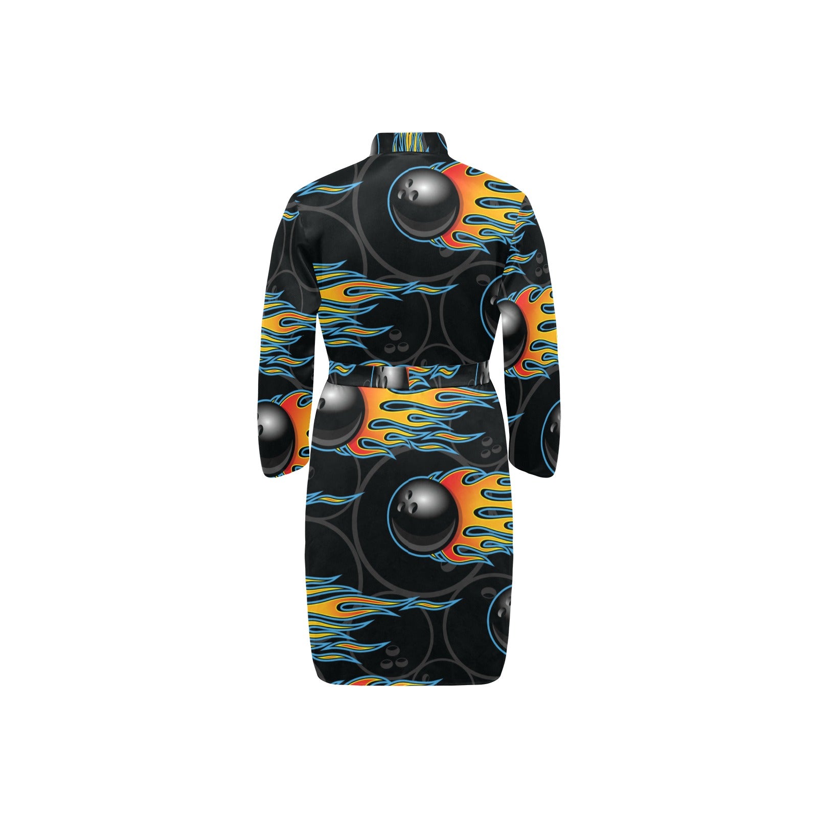 Bowling balls flame pattern Men's Long Sleeve Belted Night Robe