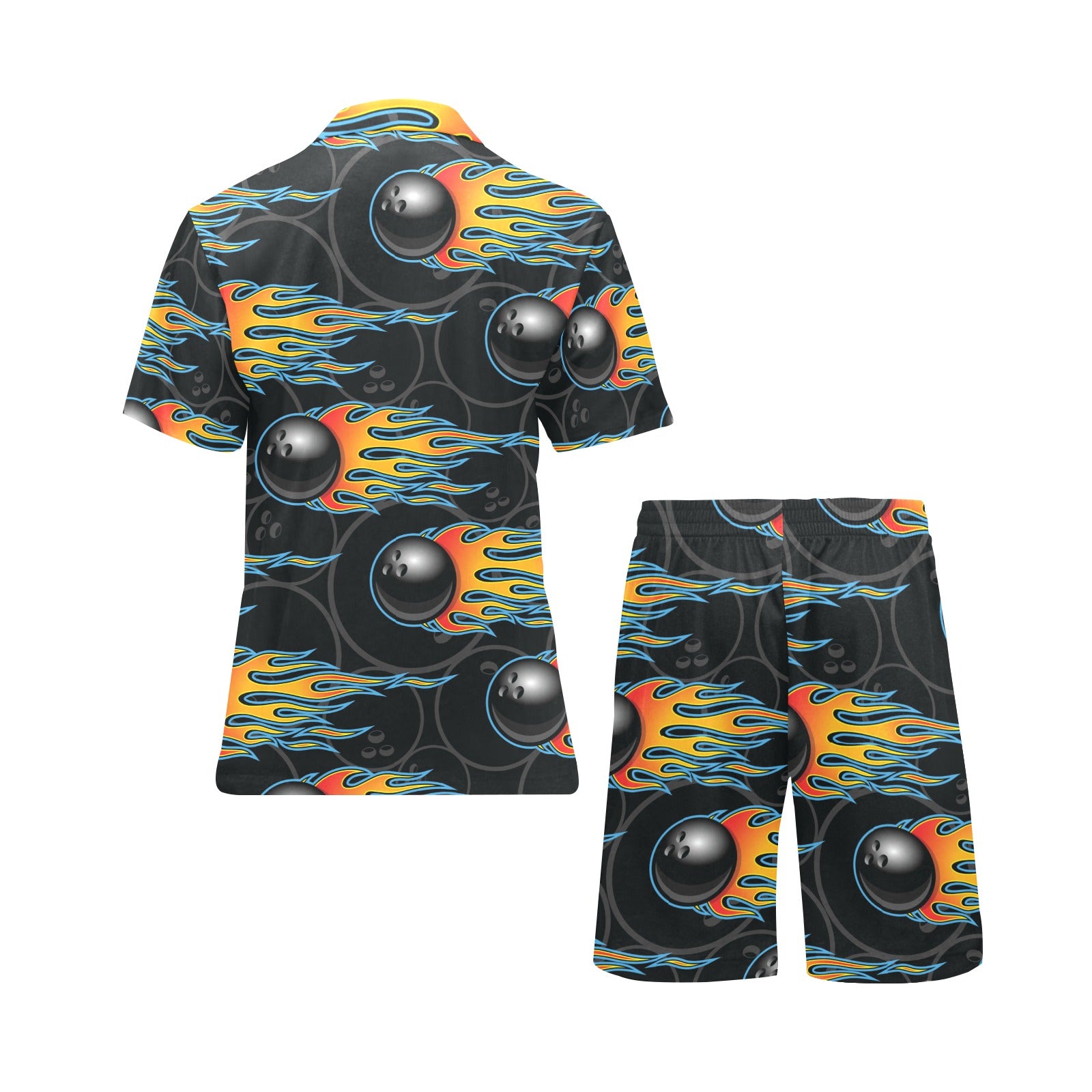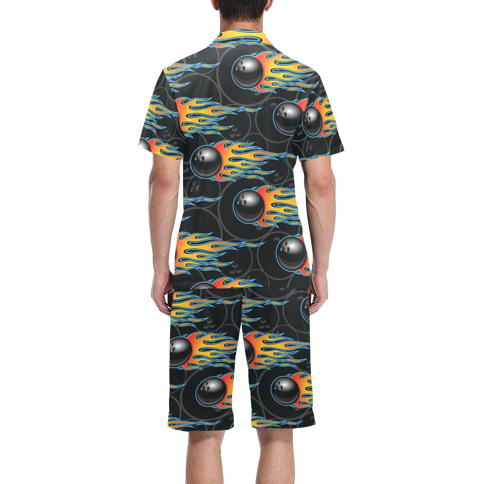 Bowling balls flame pattern Men's V-Neck Short Pajama Set