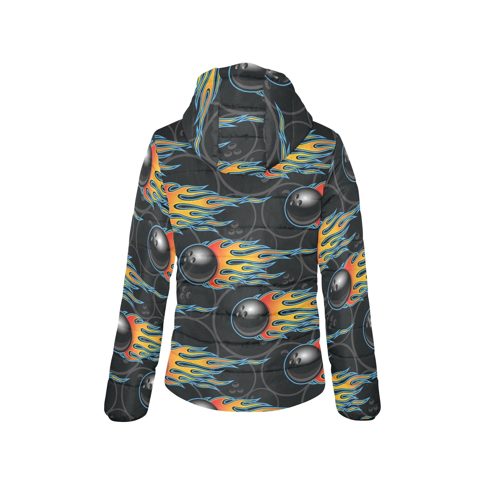Bowling balls flame pattern Women's Padded Hooded Jacket
