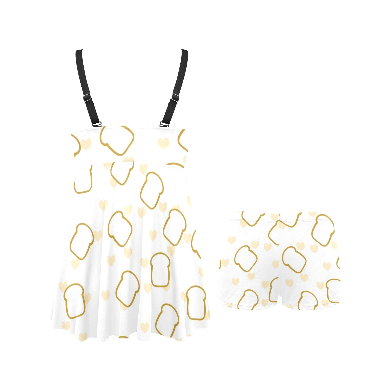 Bread Toast Pattern Print Design 01 Chest Sexy Pleated Two Piece Swim Dress