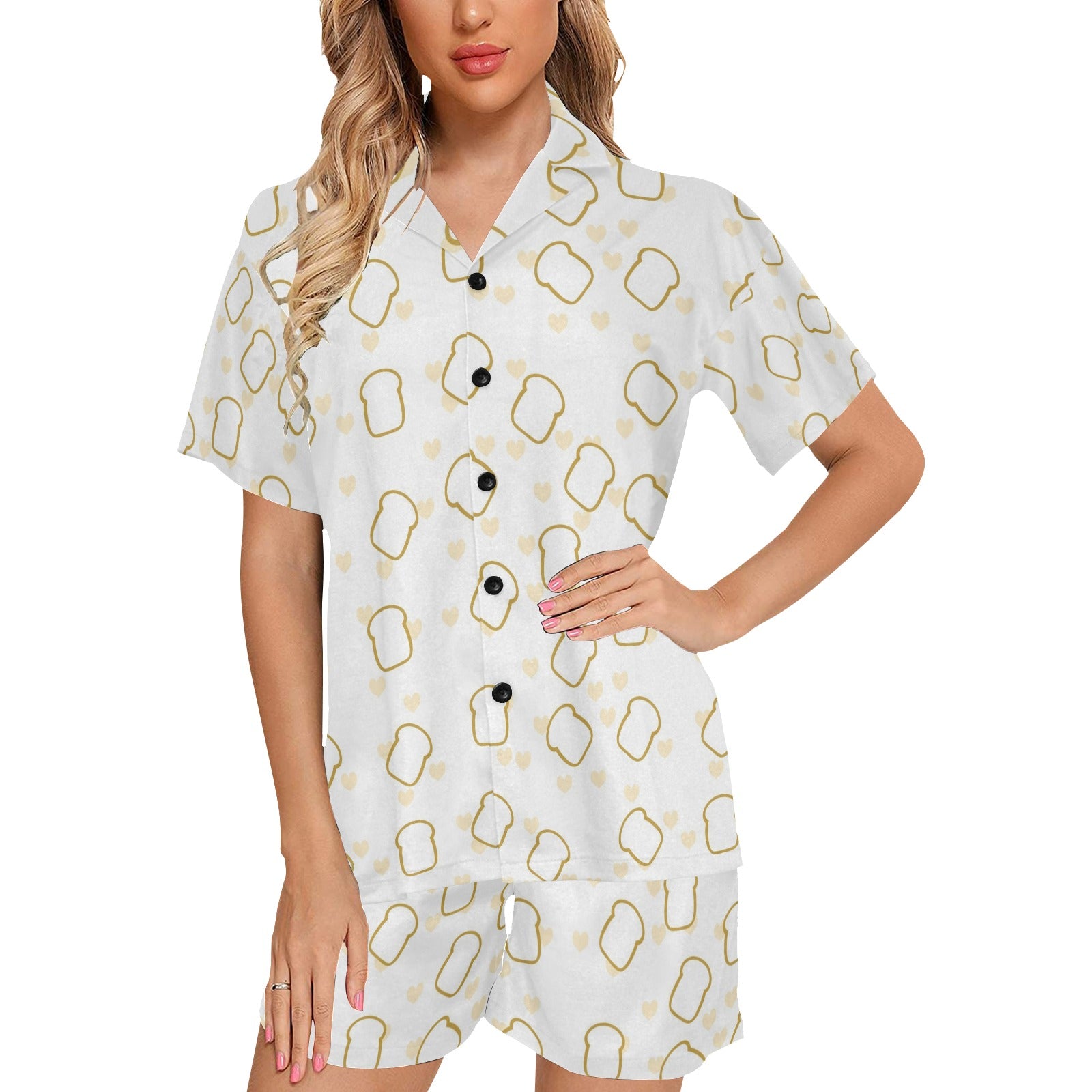 Bread Toast Pattern Print Design 01 Women's V-Neck Short Pajama Set