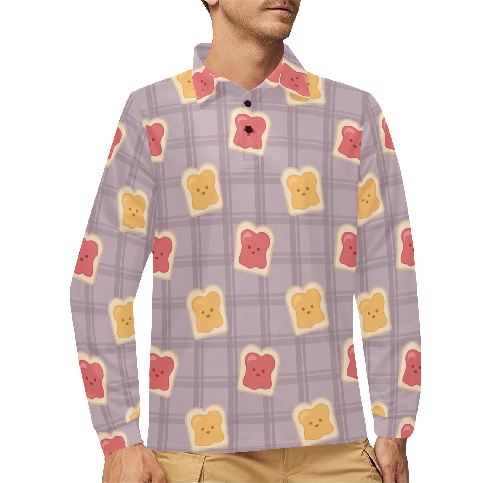 Bread Toast Pattern Print Design 05 Men's Long Sleeve Polo Shirt