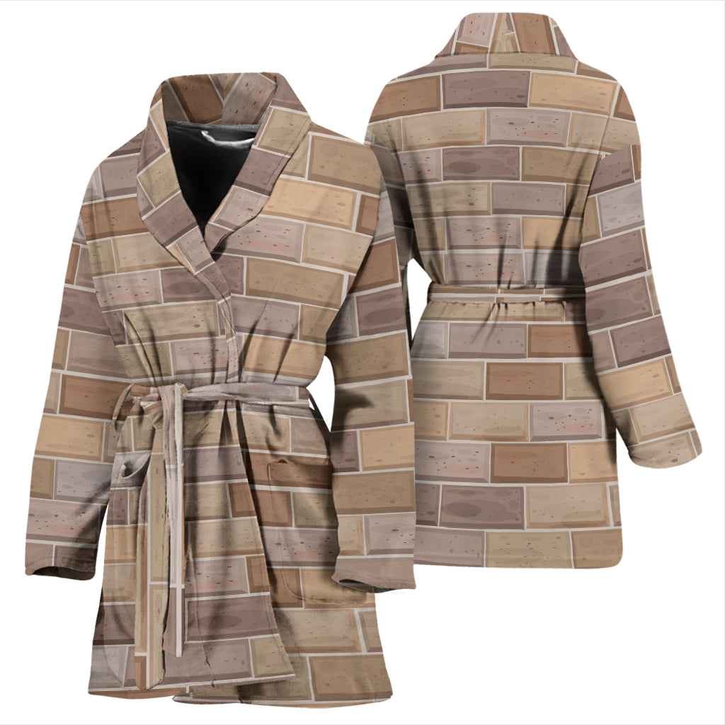 Brick Printed Pattern Print Design 01 Women's Bathrobe