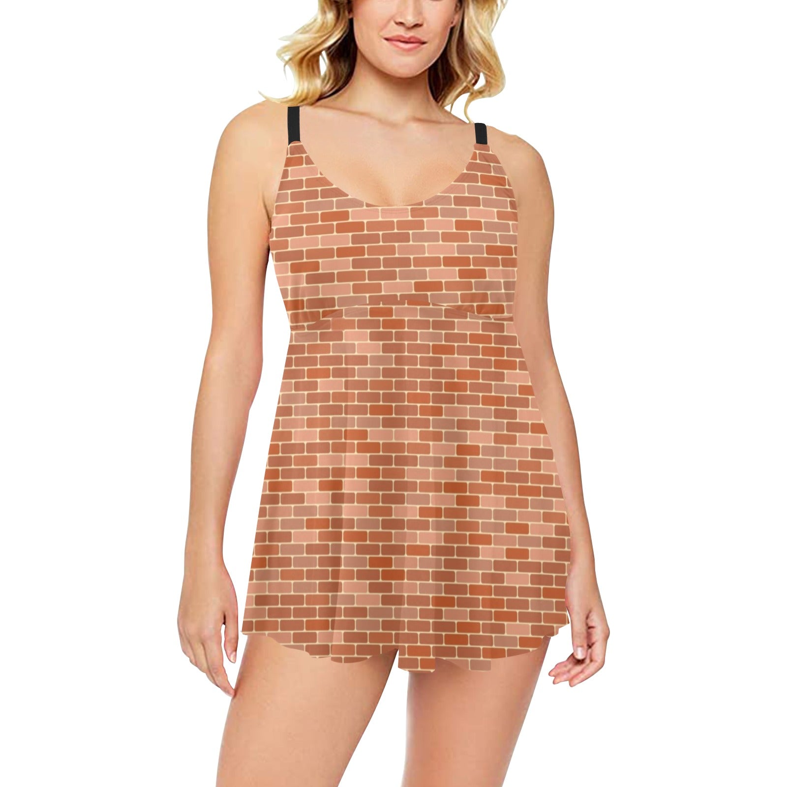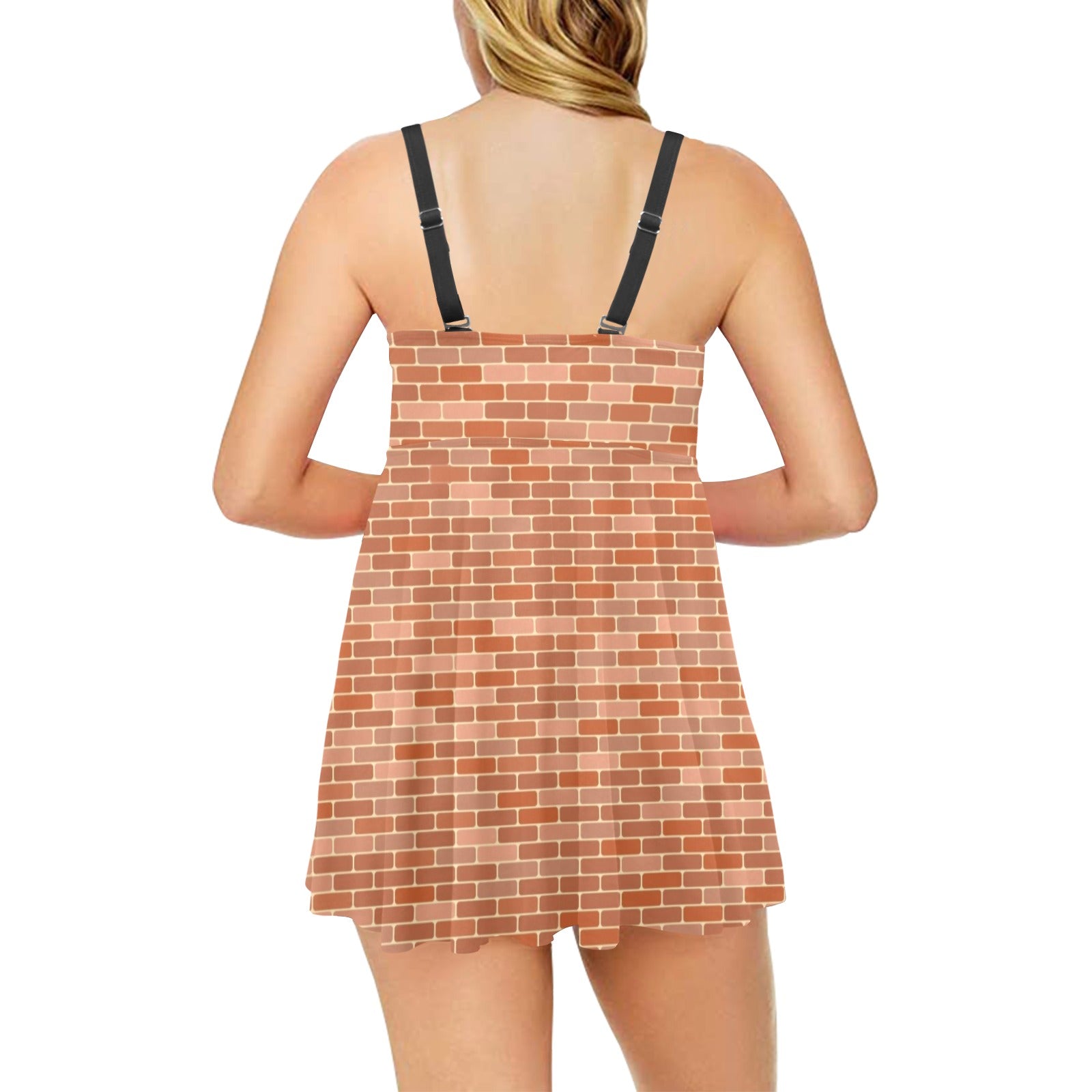 Brick Printed Pattern Print Design 02 Chest Sexy Pleated Two Piece Swim Dress