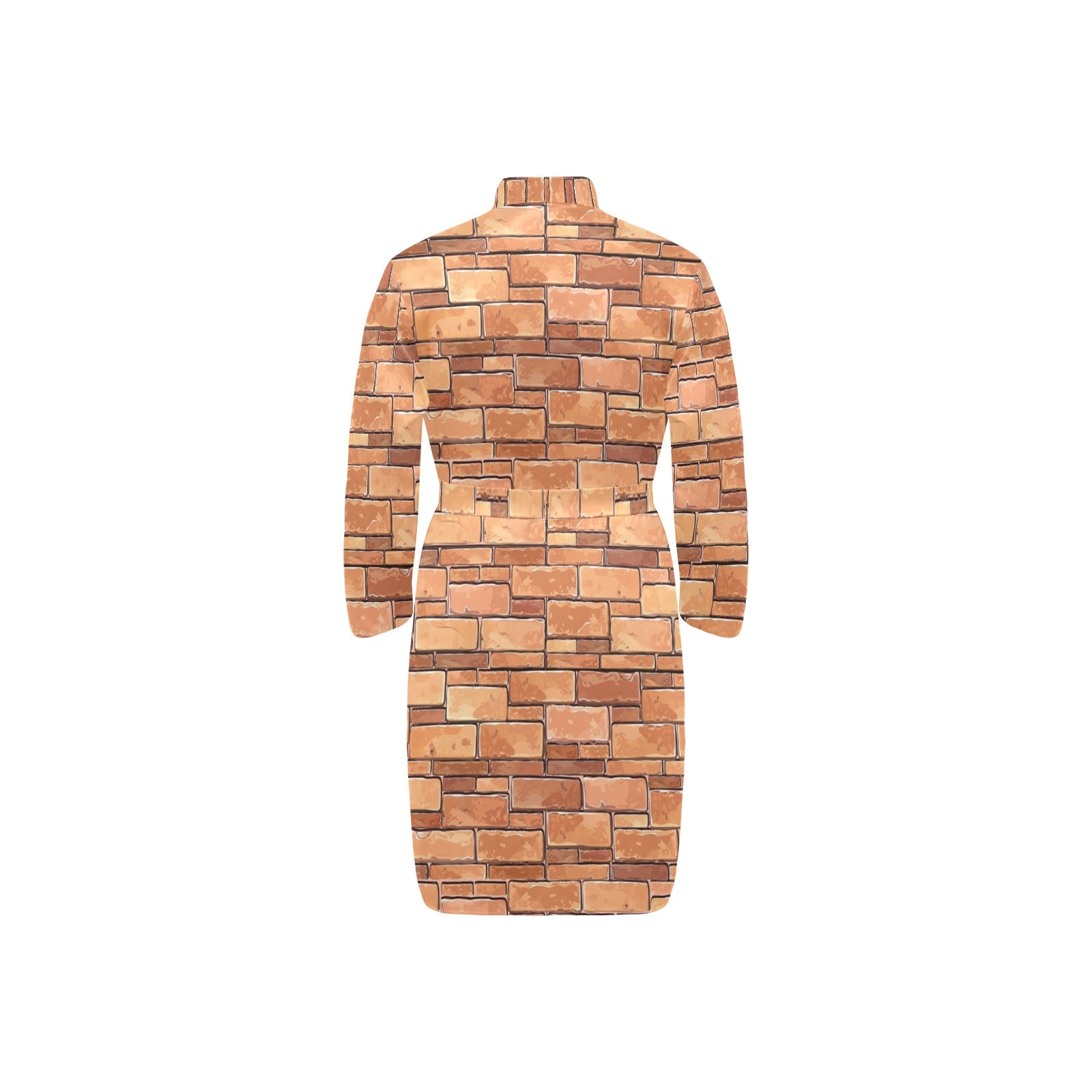 Brick Printed Pattern Print Design 04 Men's Long Sleeve Belted Night Robe
