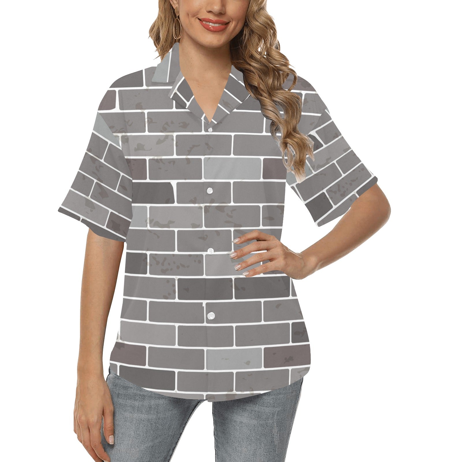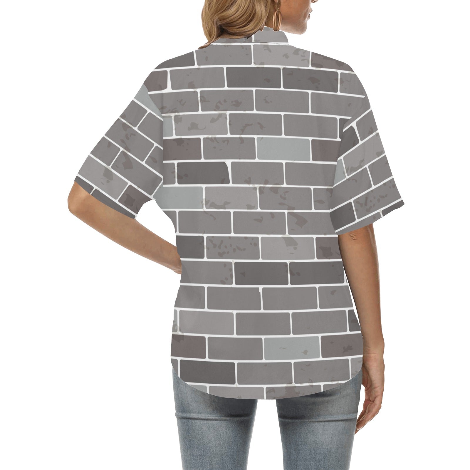 Brick Printed Pattern Print Design 05 Women's All Over Print Hawaiian Shirt