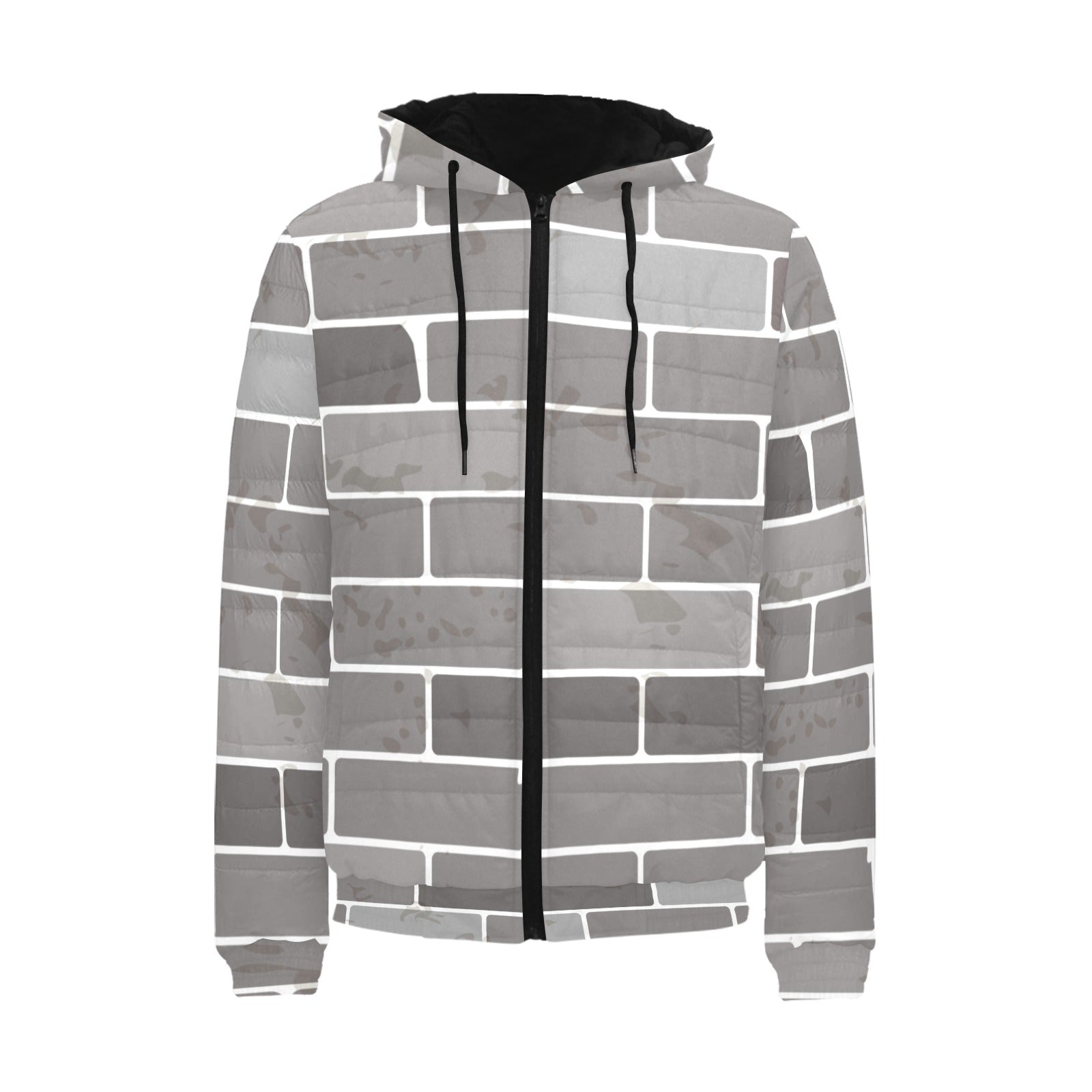 Brick Printed Pattern Print Design 05 Men's Padded Hooded Jacket
