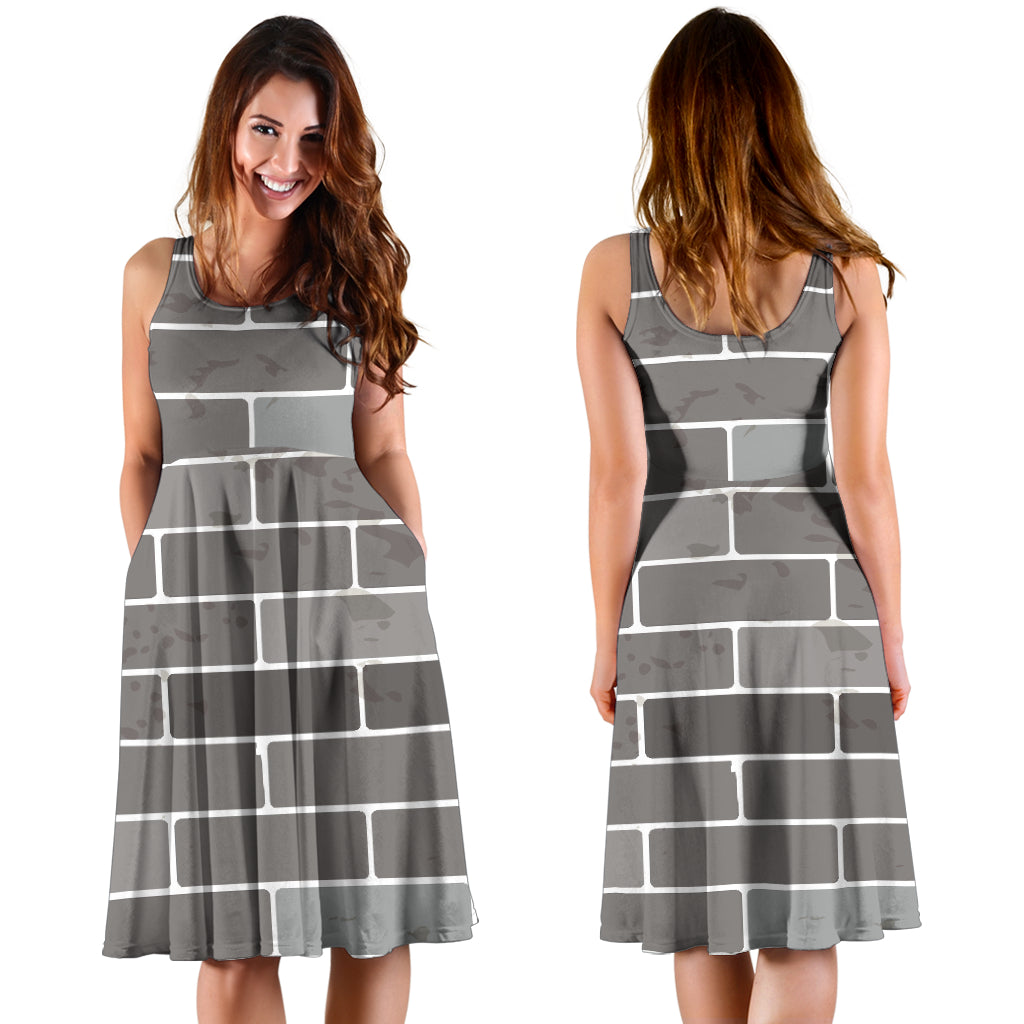 Brick Printed Pattern Print Design 05 Sleeveless Midi Dress