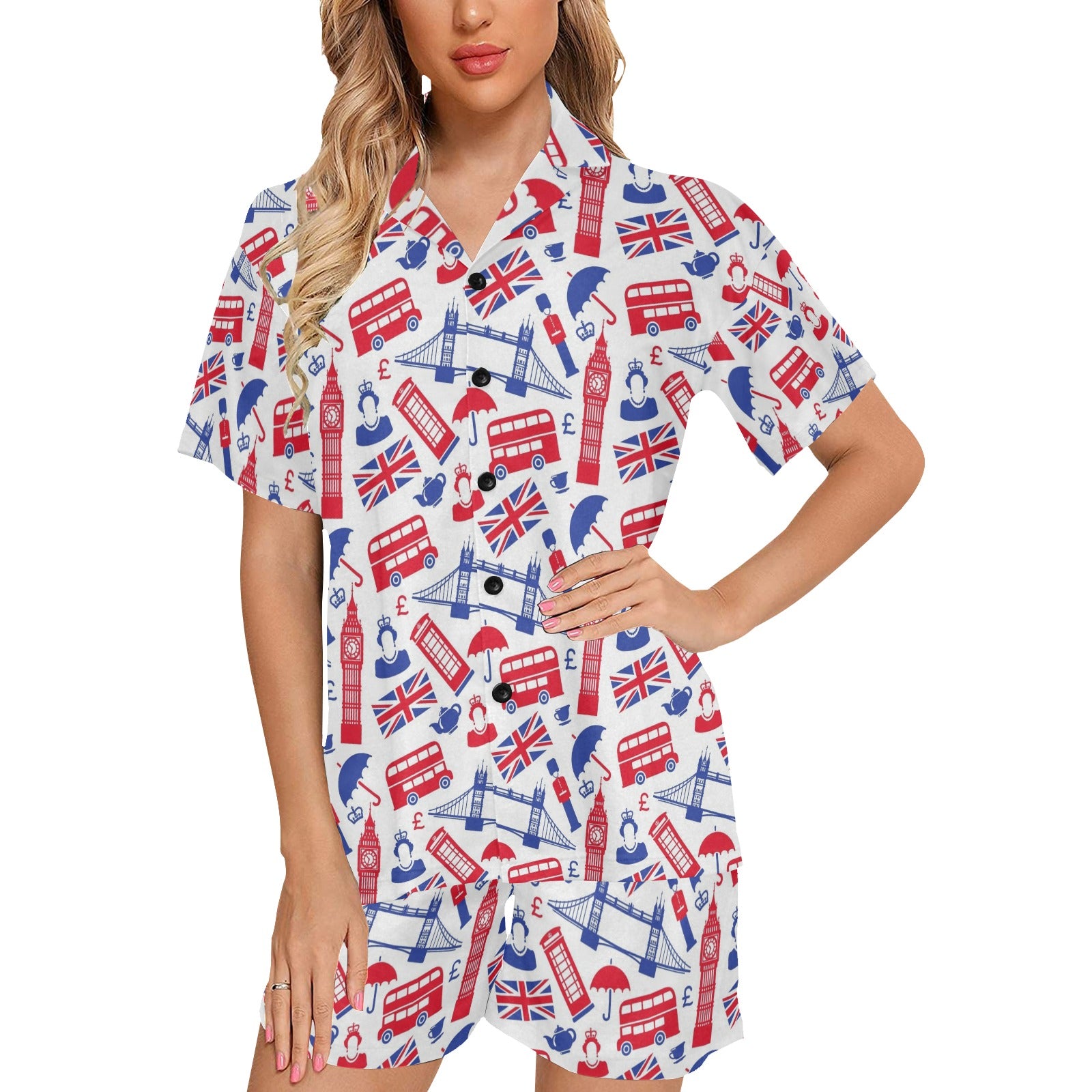 British Pattern Print Design 01 Women's V-Neck Short Pajama Set