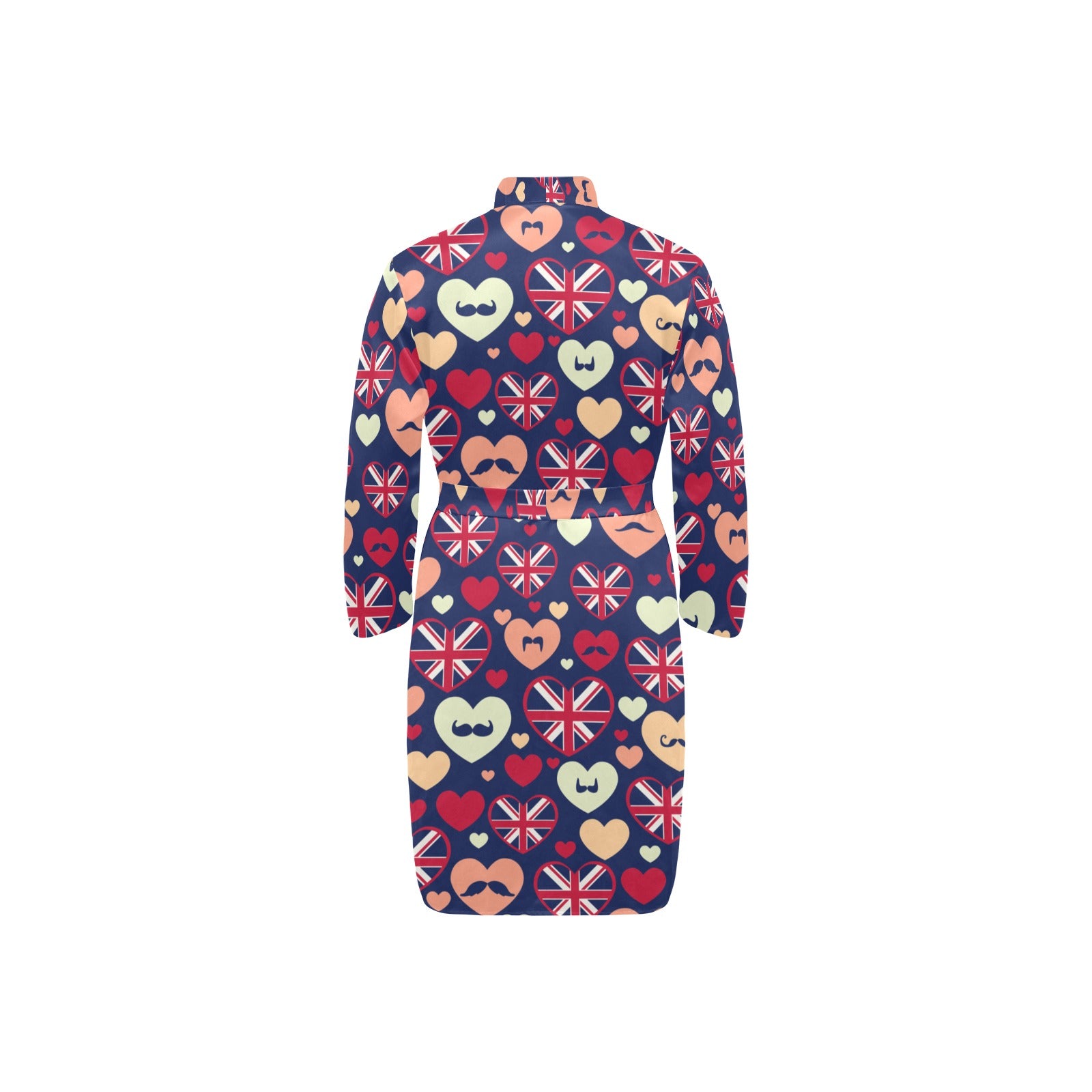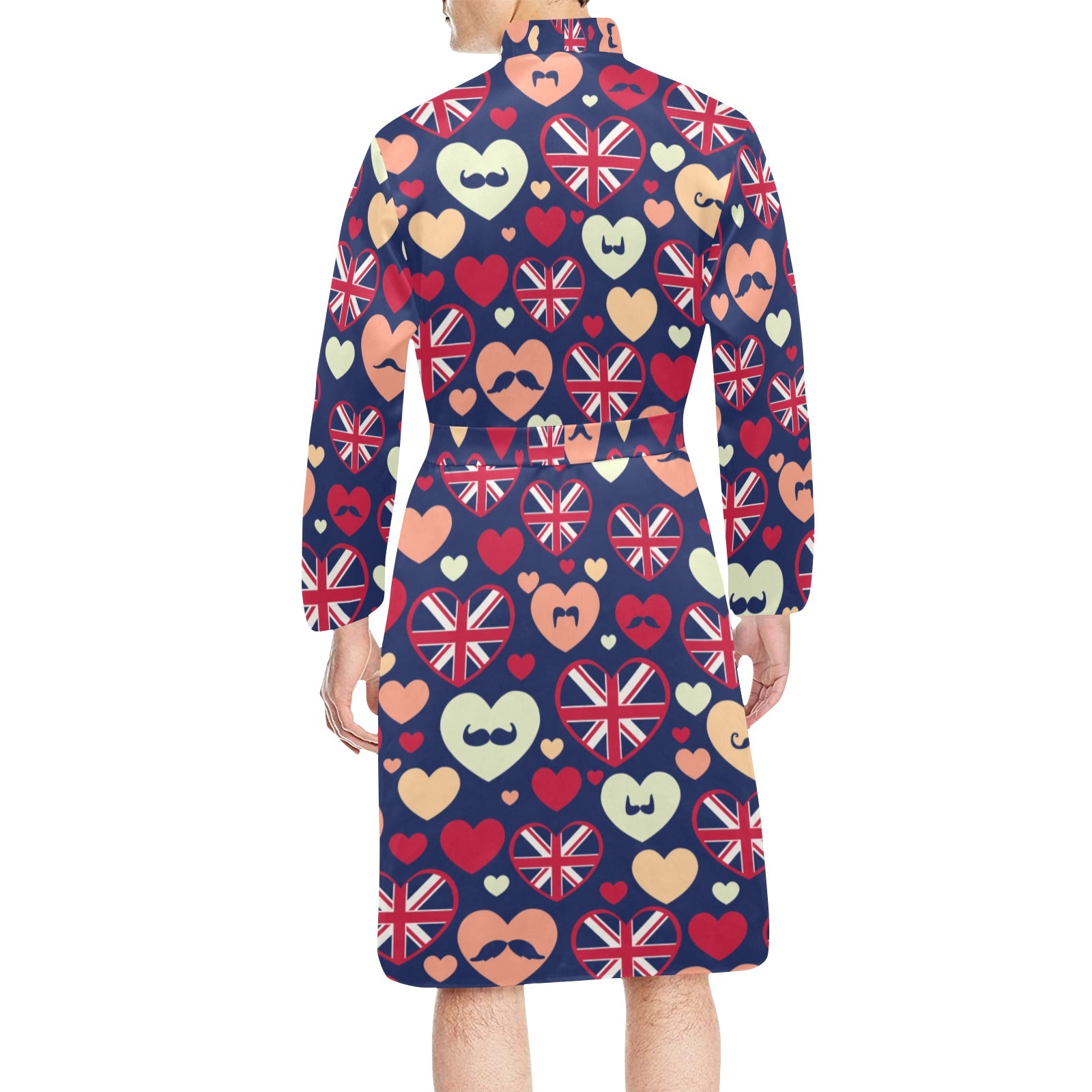 British Pattern Print Design 02 Men's Long Sleeve Belted Night Robe