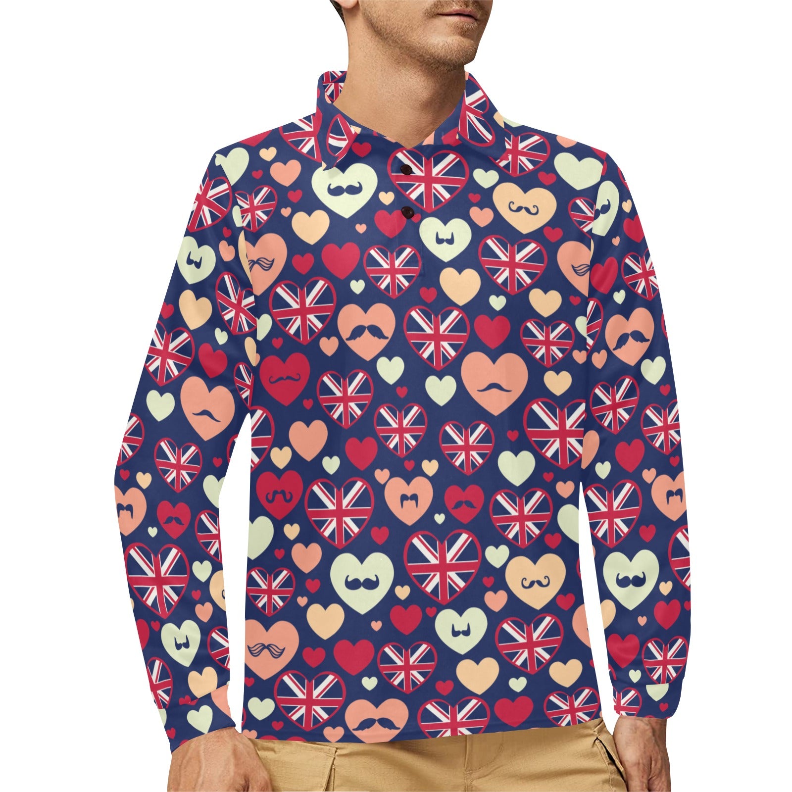 British Pattern Print Design 02 Men's Long Sleeve Polo Shirt