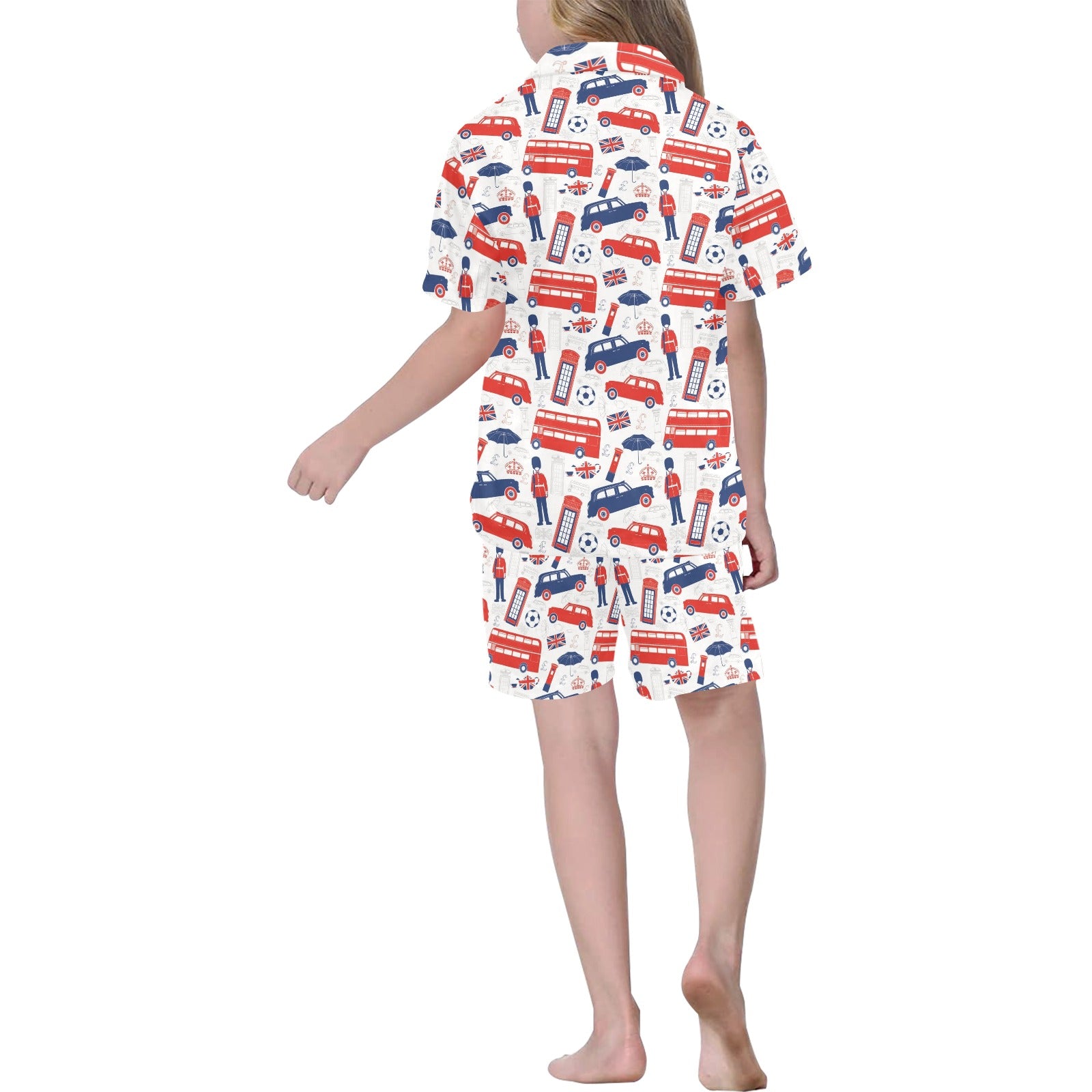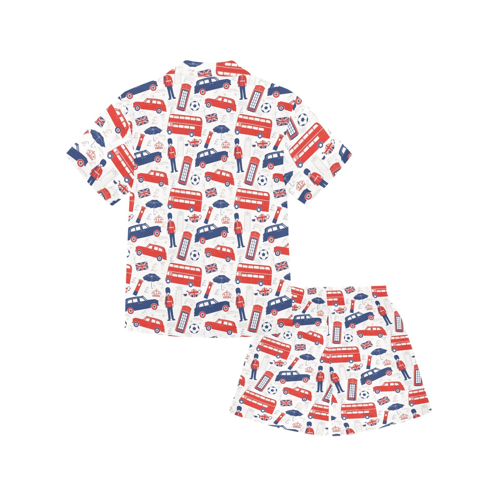 British Pattern Print Design 03 Kids' Boys' Girls' V-Neck Short Pajama Set