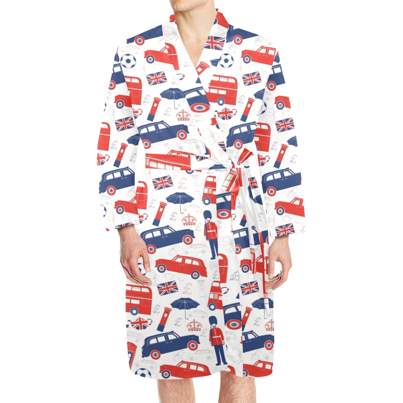 British Pattern Print Design 03 Men's Long Sleeve Belted Night Robe