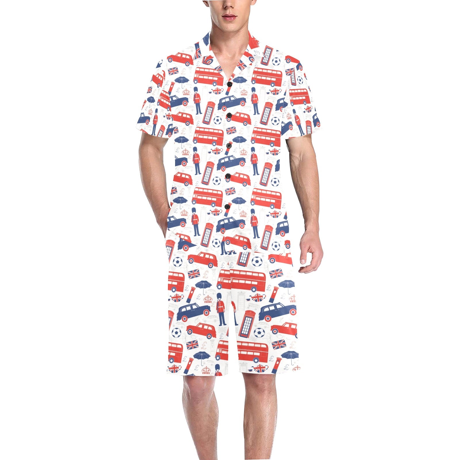British Pattern Print Design 03 Men's V-Neck Short Pajama Set