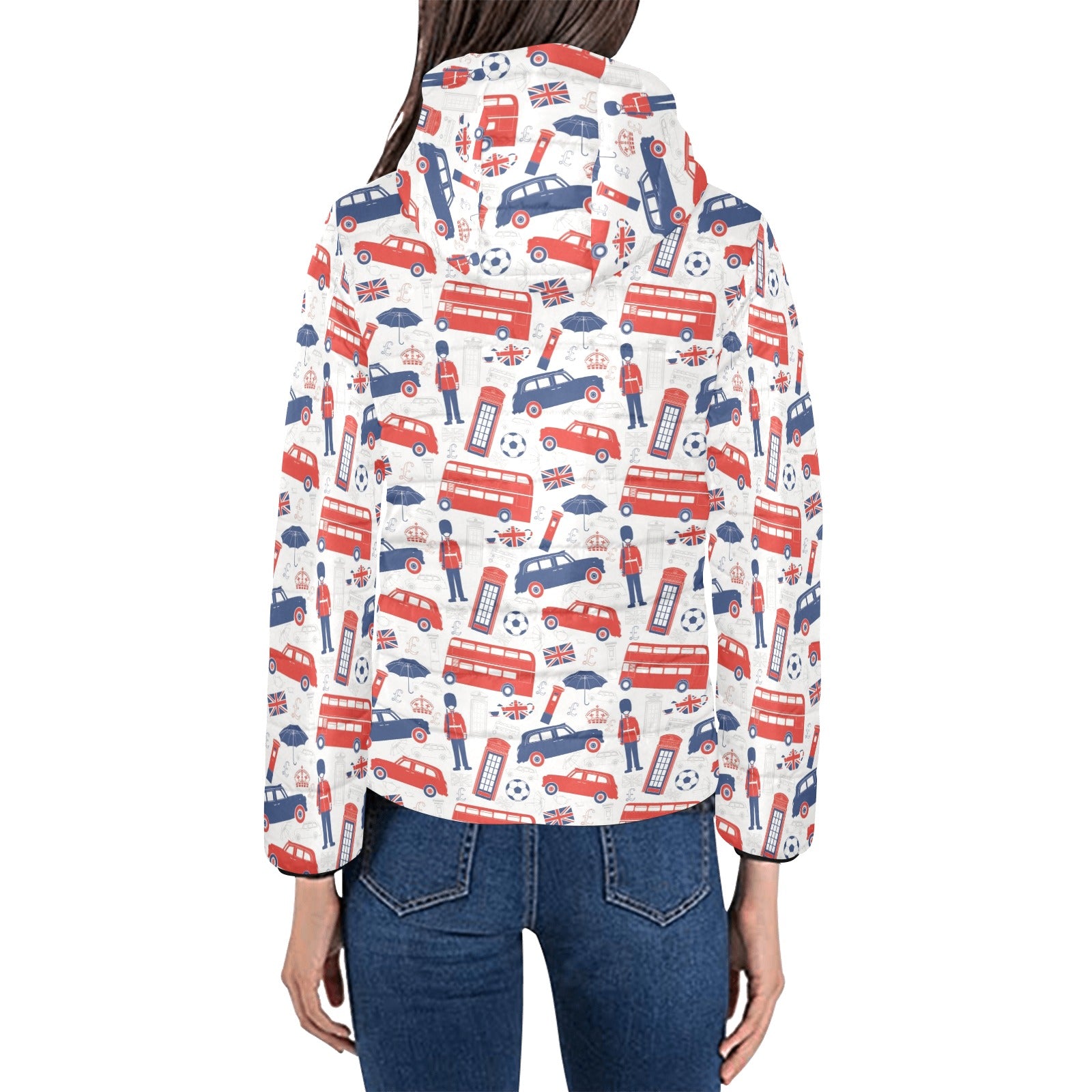 British Pattern Print Design 03 Women's Padded Hooded Jacket