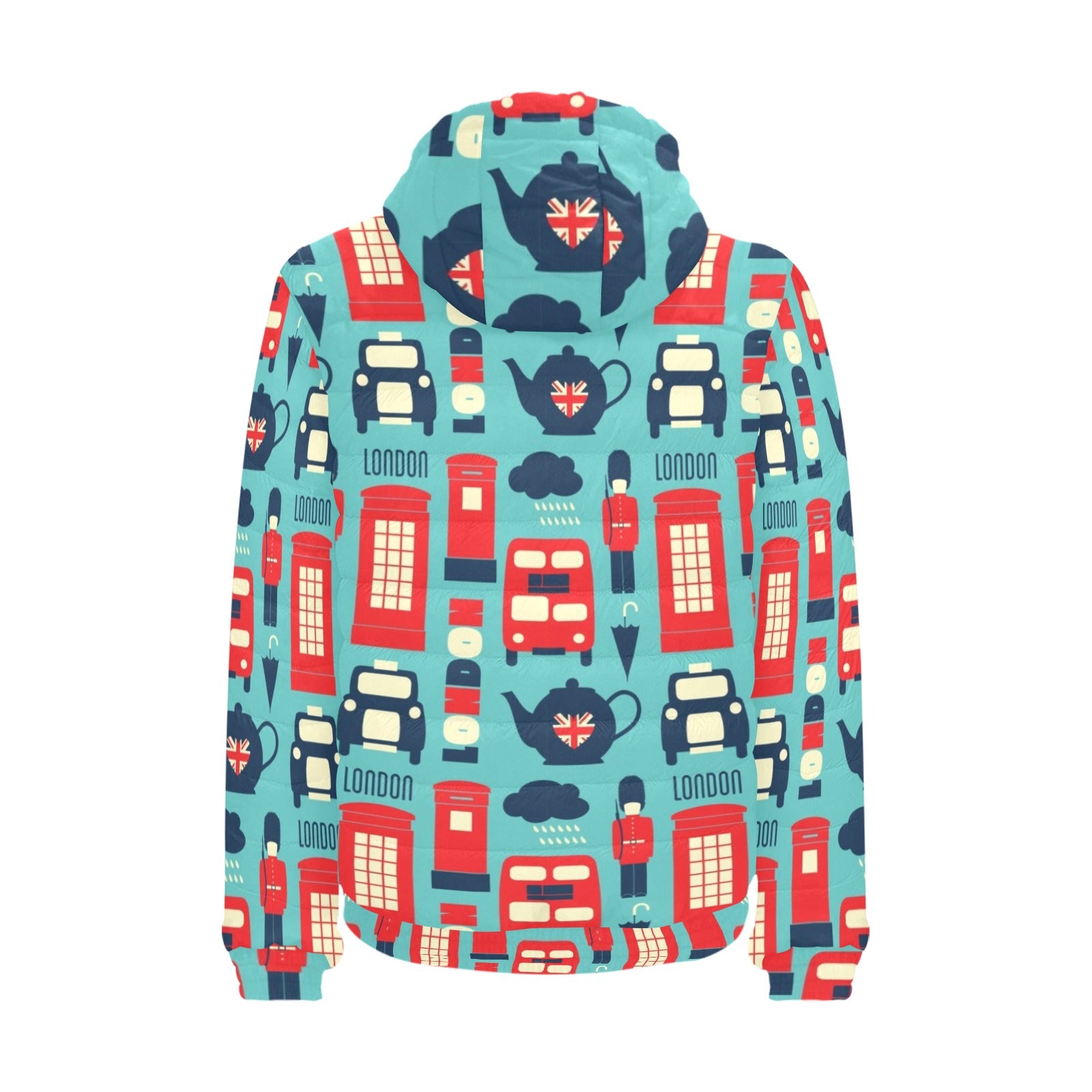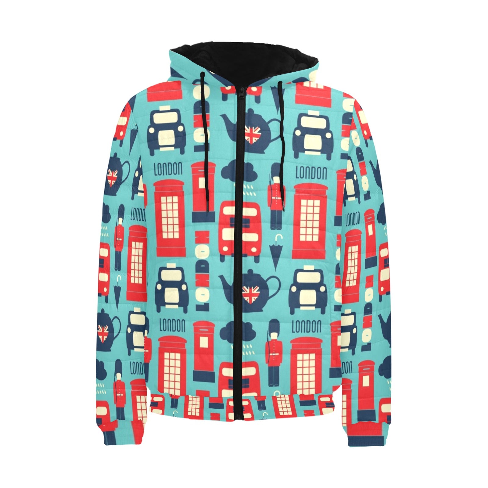 British Pattern Print Design 04 Men's Padded Hooded Jacket