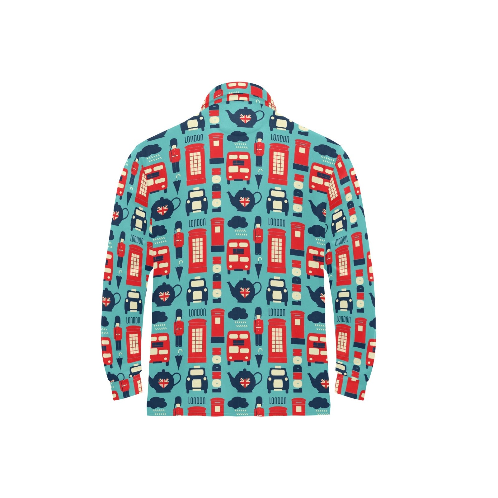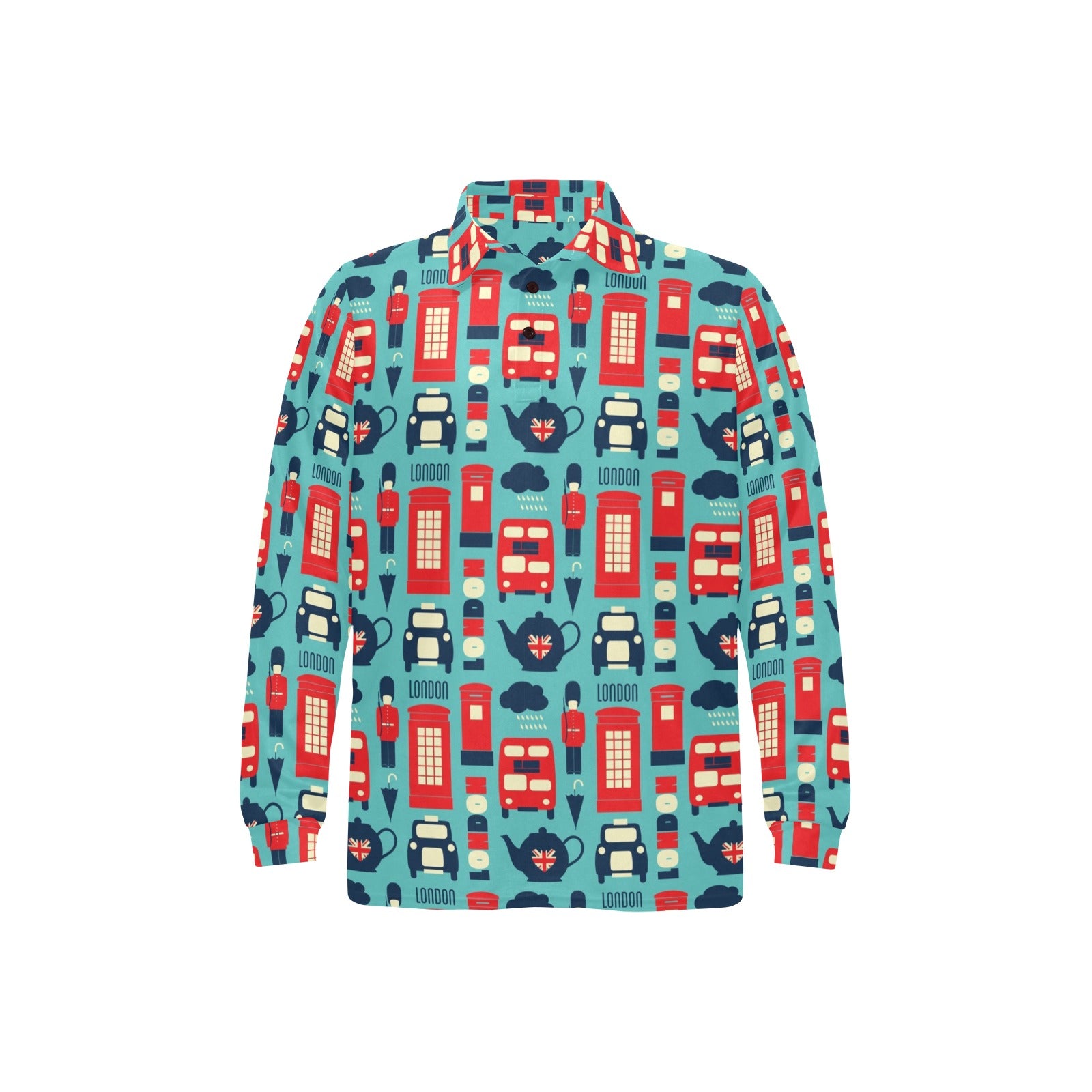 British Pattern Print Design 04 Men's Long Sleeve Polo Shirt