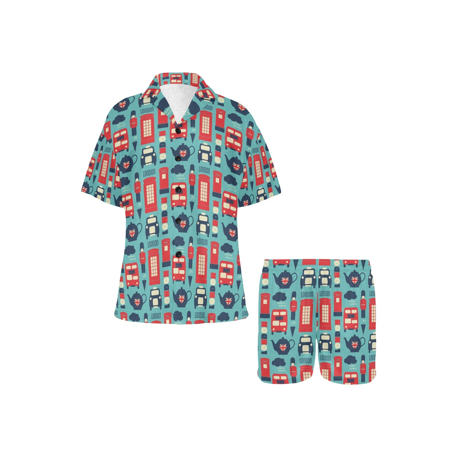 British Pattern Print Design 04 Women's V-Neck Short Pajama Set