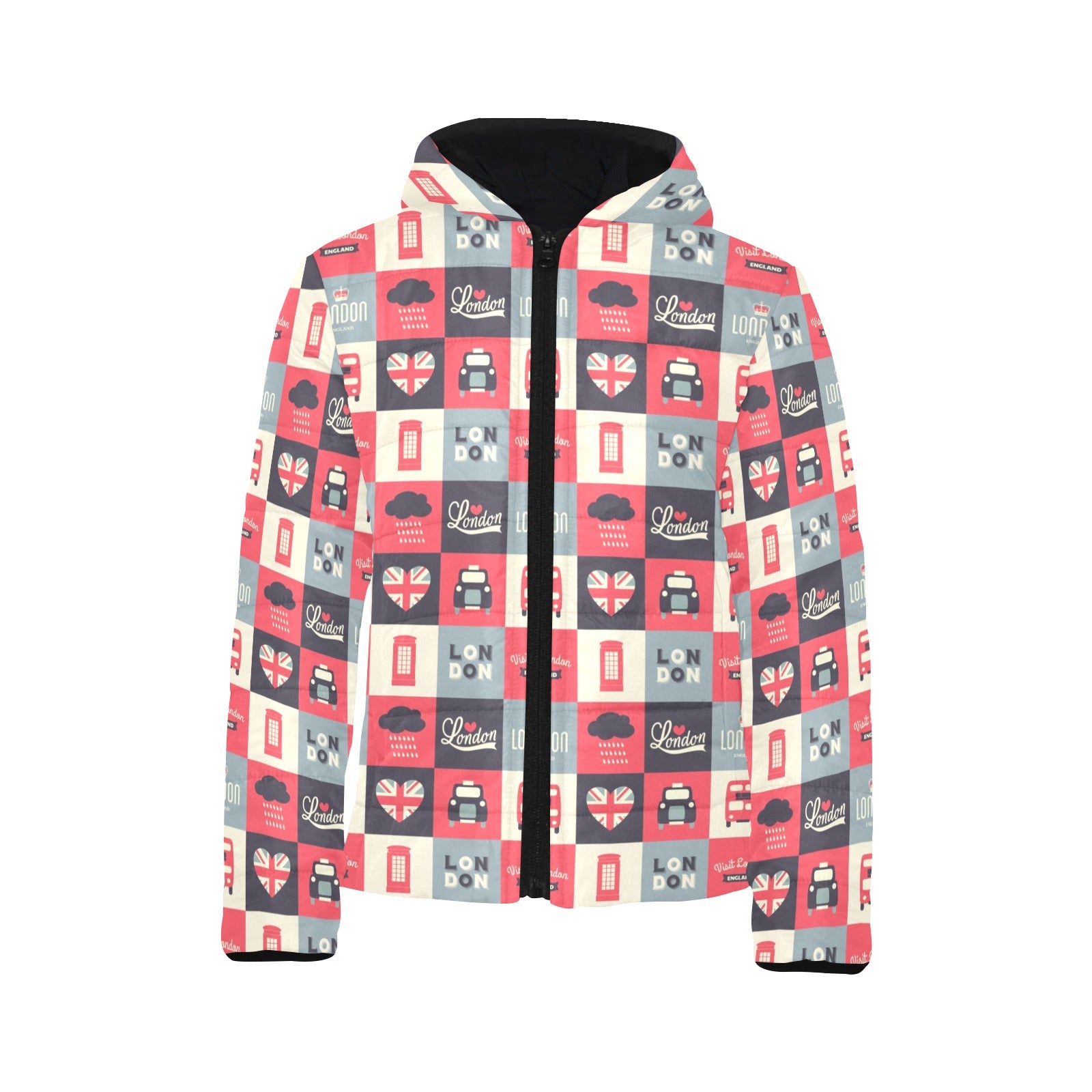 British Pattern Print Design 05 Kids' Boys' Girls' Padded Hooded Jacket