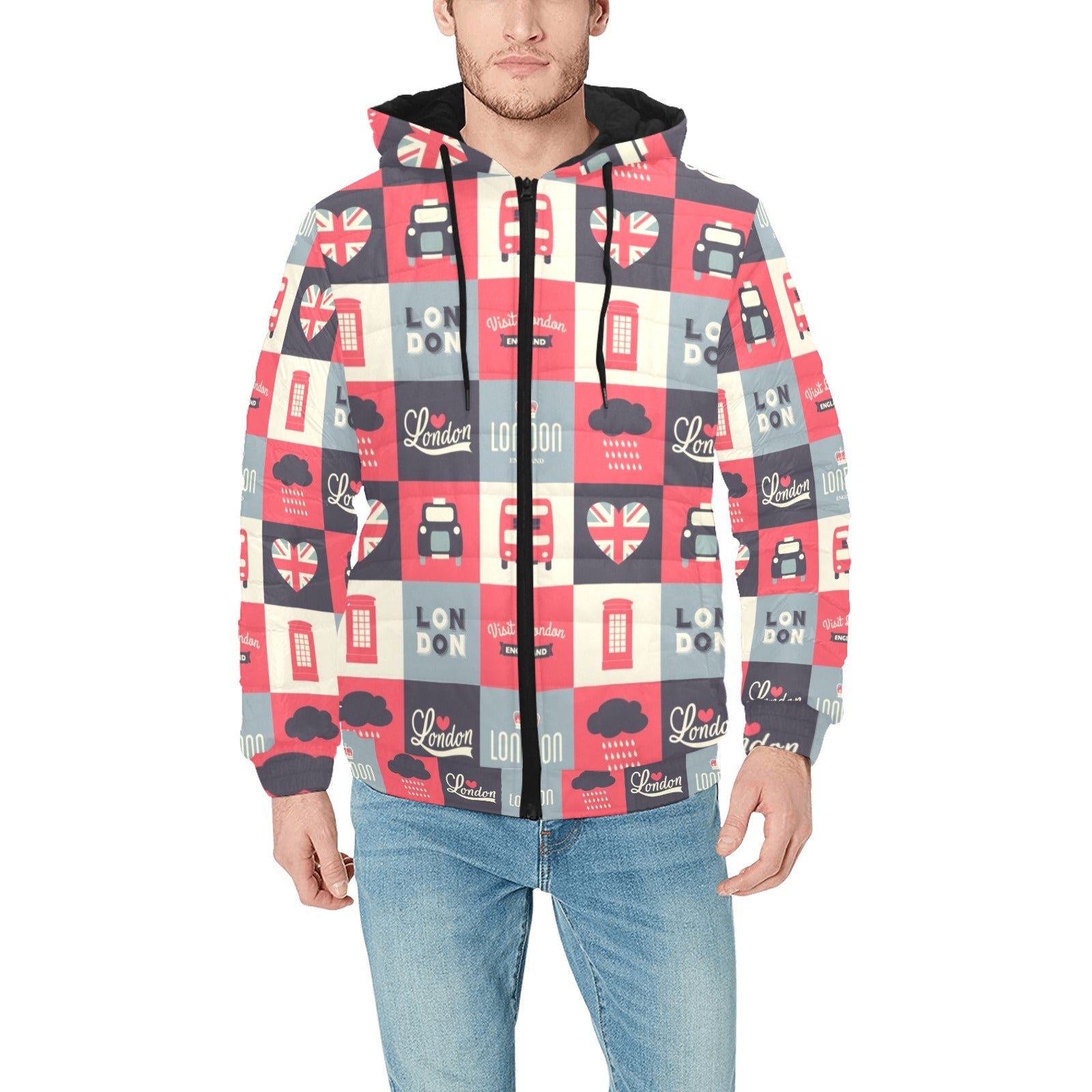 British Pattern Print Design 05 Men's Padded Hooded Jacket