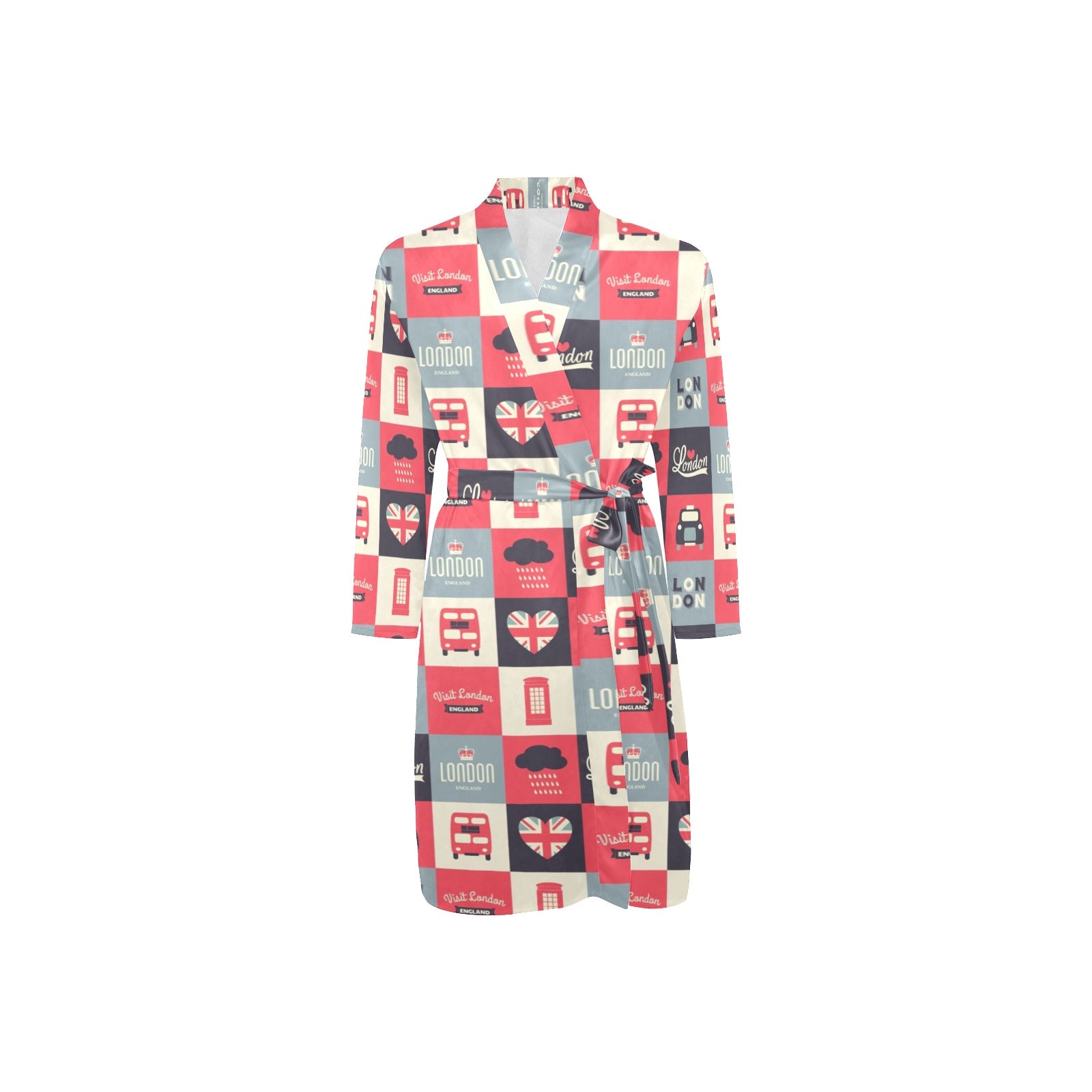 British Pattern Print Design 05 Men's Long Sleeve Belted Night Robe