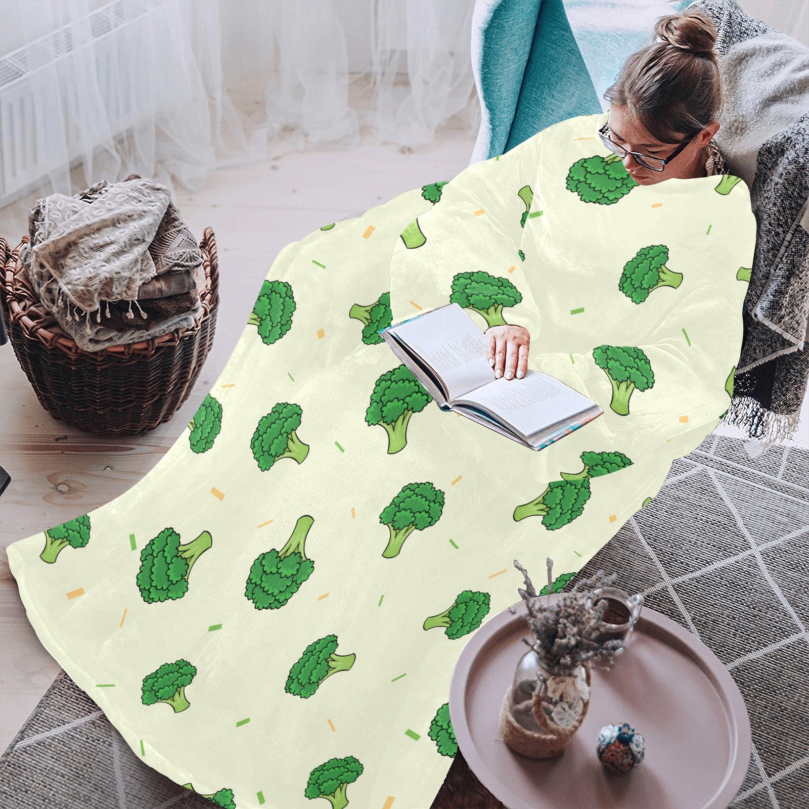 Broccoli pattern Blanket Robe with Sleeves