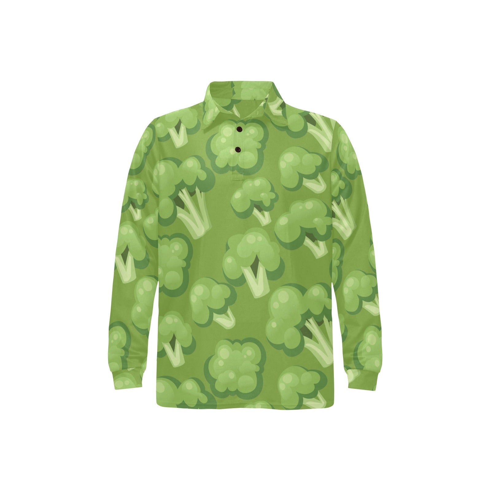 Broccoli pattern green background Men's Long Sleeve Polo Shirt