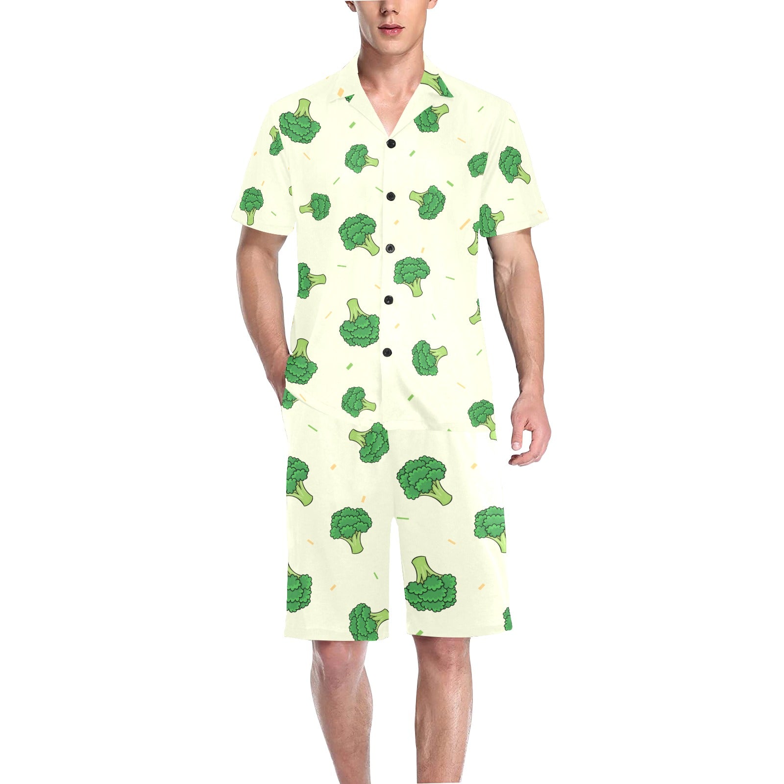 Broccoli pattern Men's V-Neck Short Pajama Set