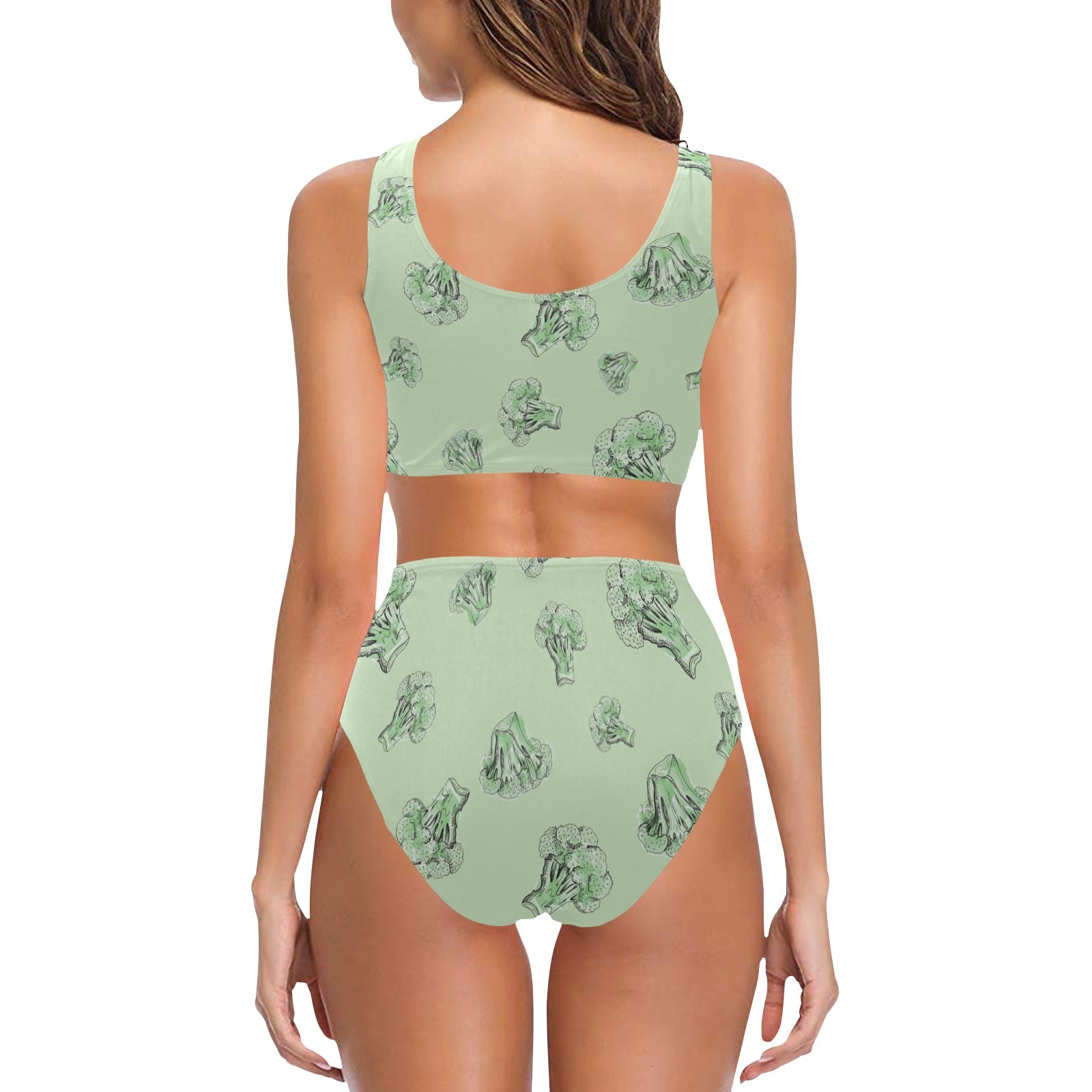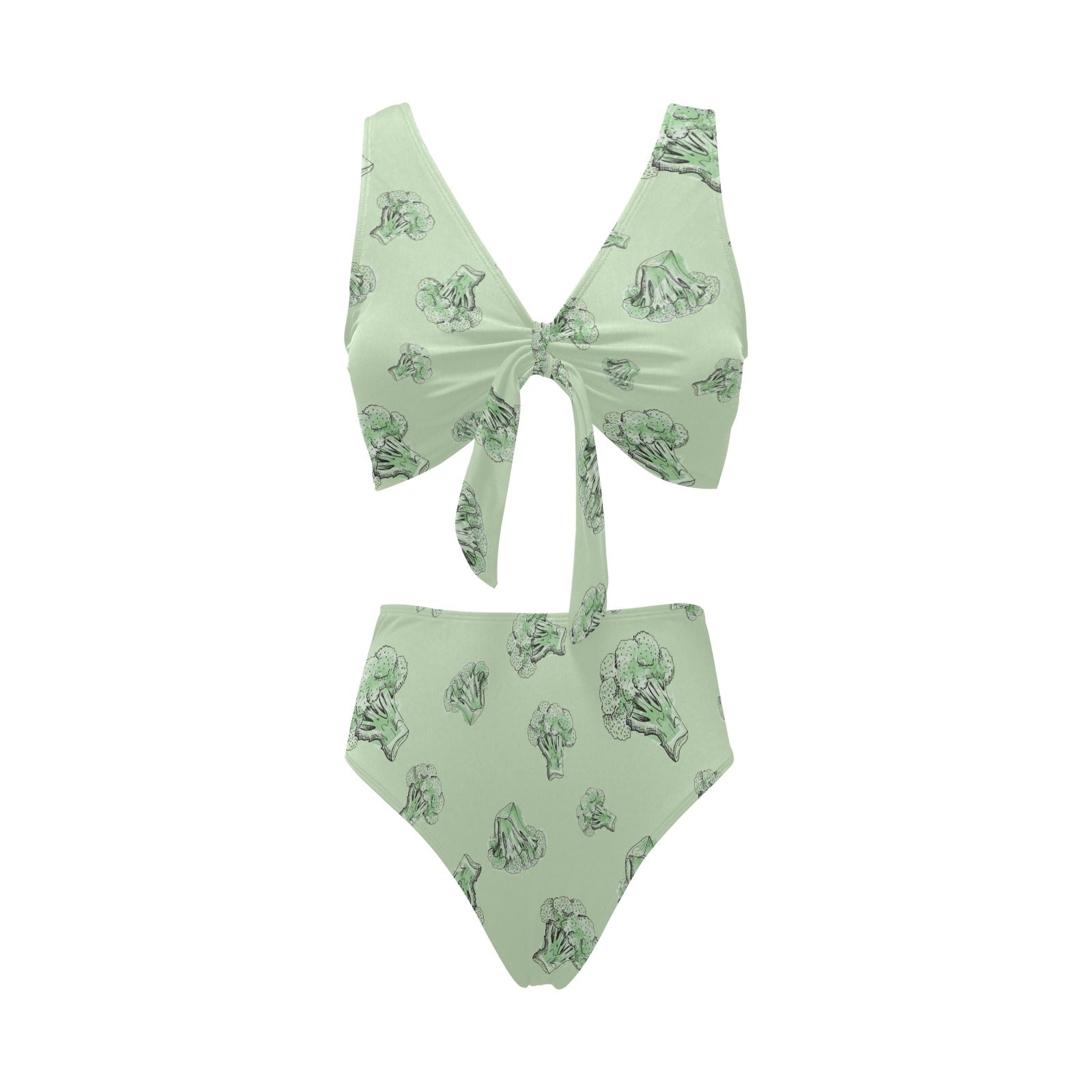 broccoli sketch pattern Chest Bowknot High Waisted Bikini Swimsuit