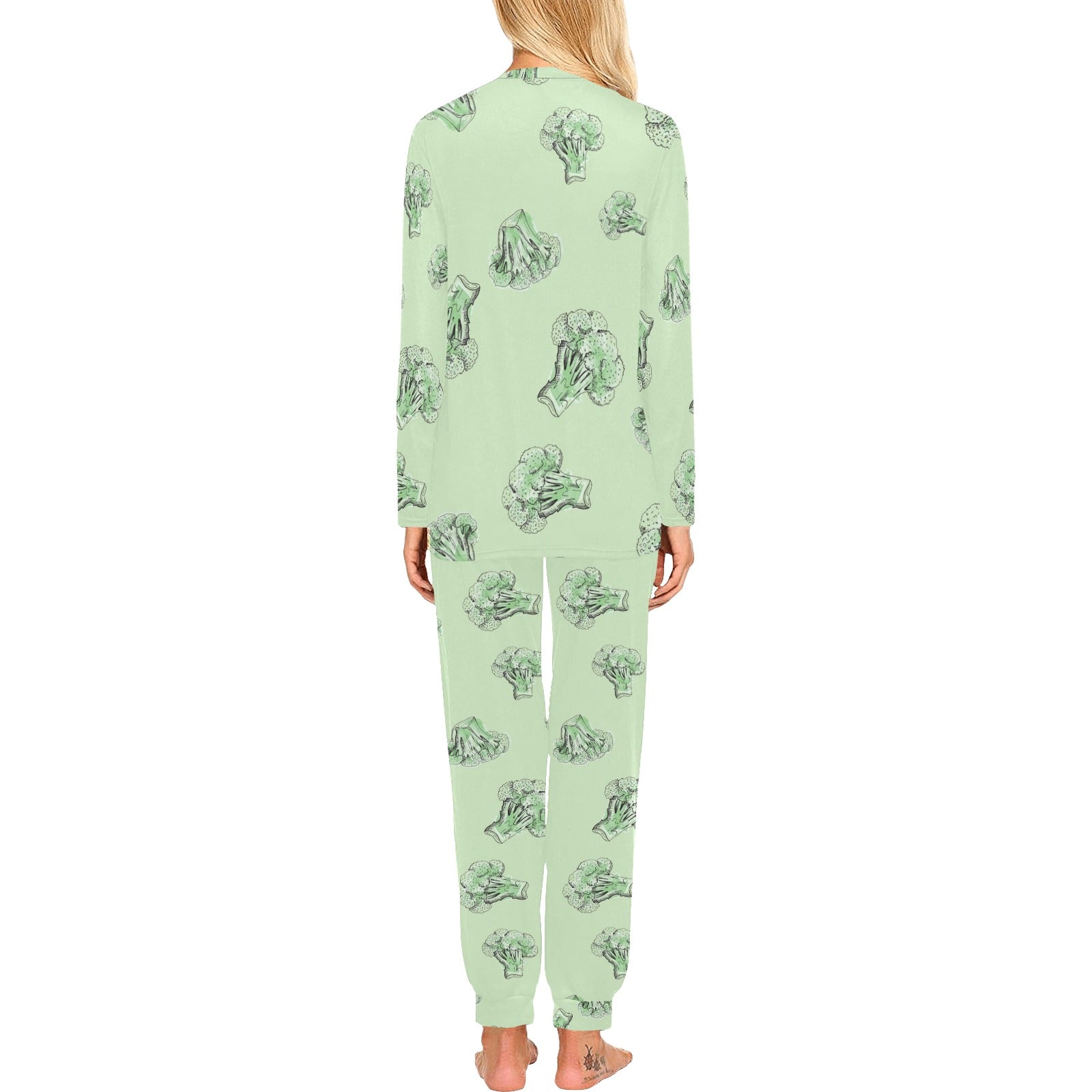broccoli sketch pattern Women's All Over Print Pajama Set