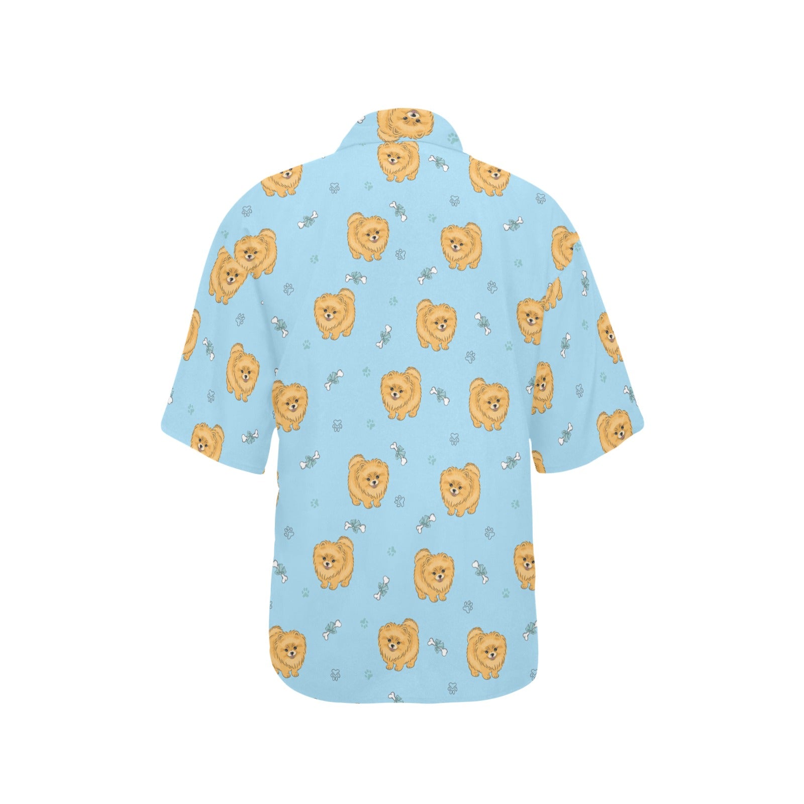 Brown cute pomeranian blue blackground Women's All Over Print Hawaiian Shirt