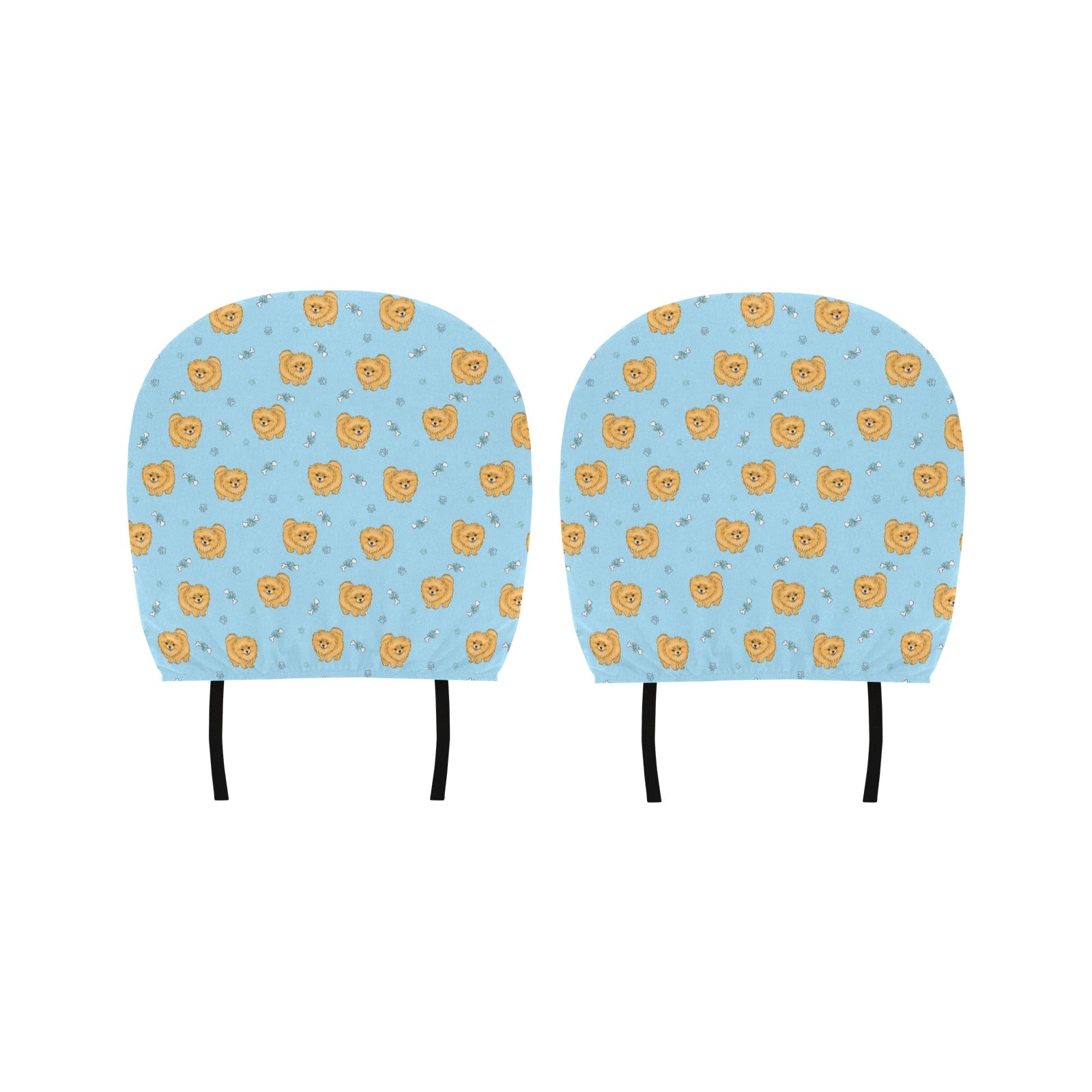 Brown cute pomeranian blue blackground Car Headrest Cover