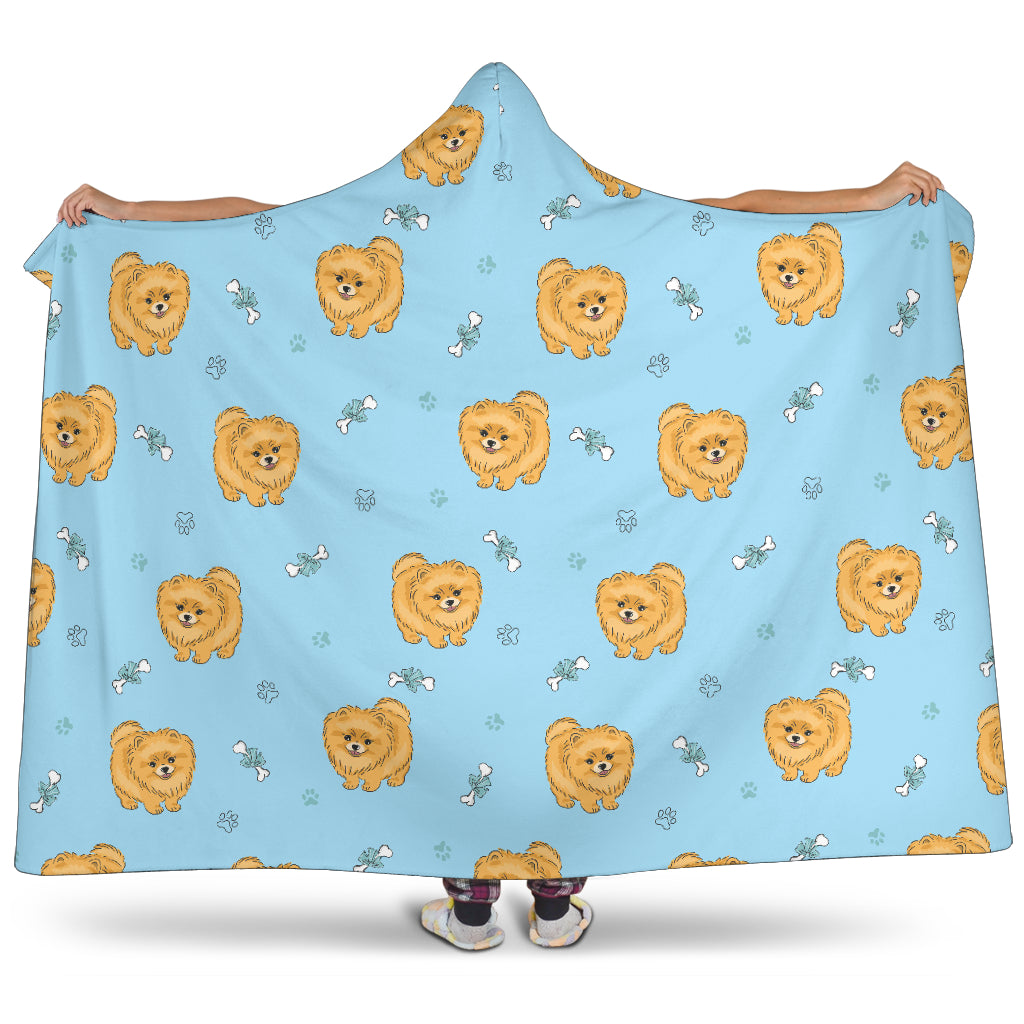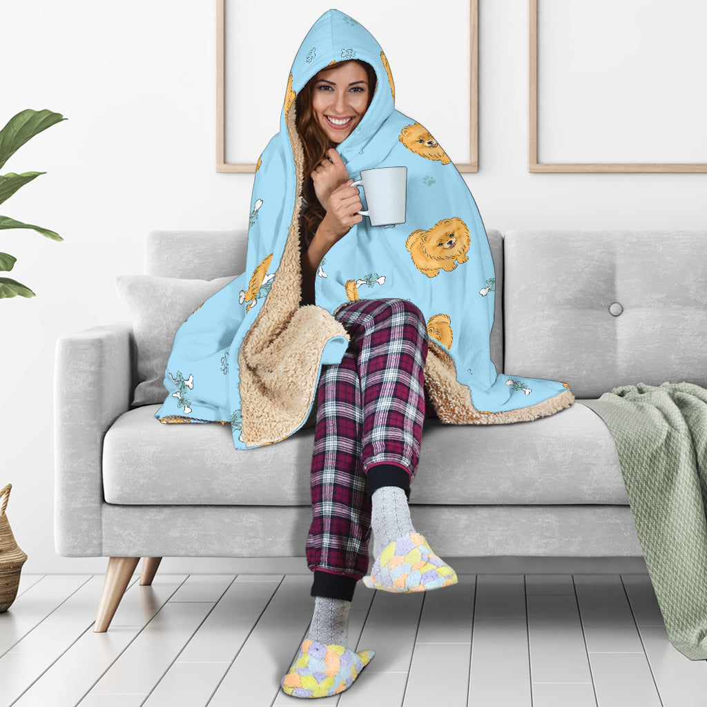 Brown cute pomeranian blue blackground Hooded Blanket are custom-made-to-order and handcrafted to the highest quality standards.