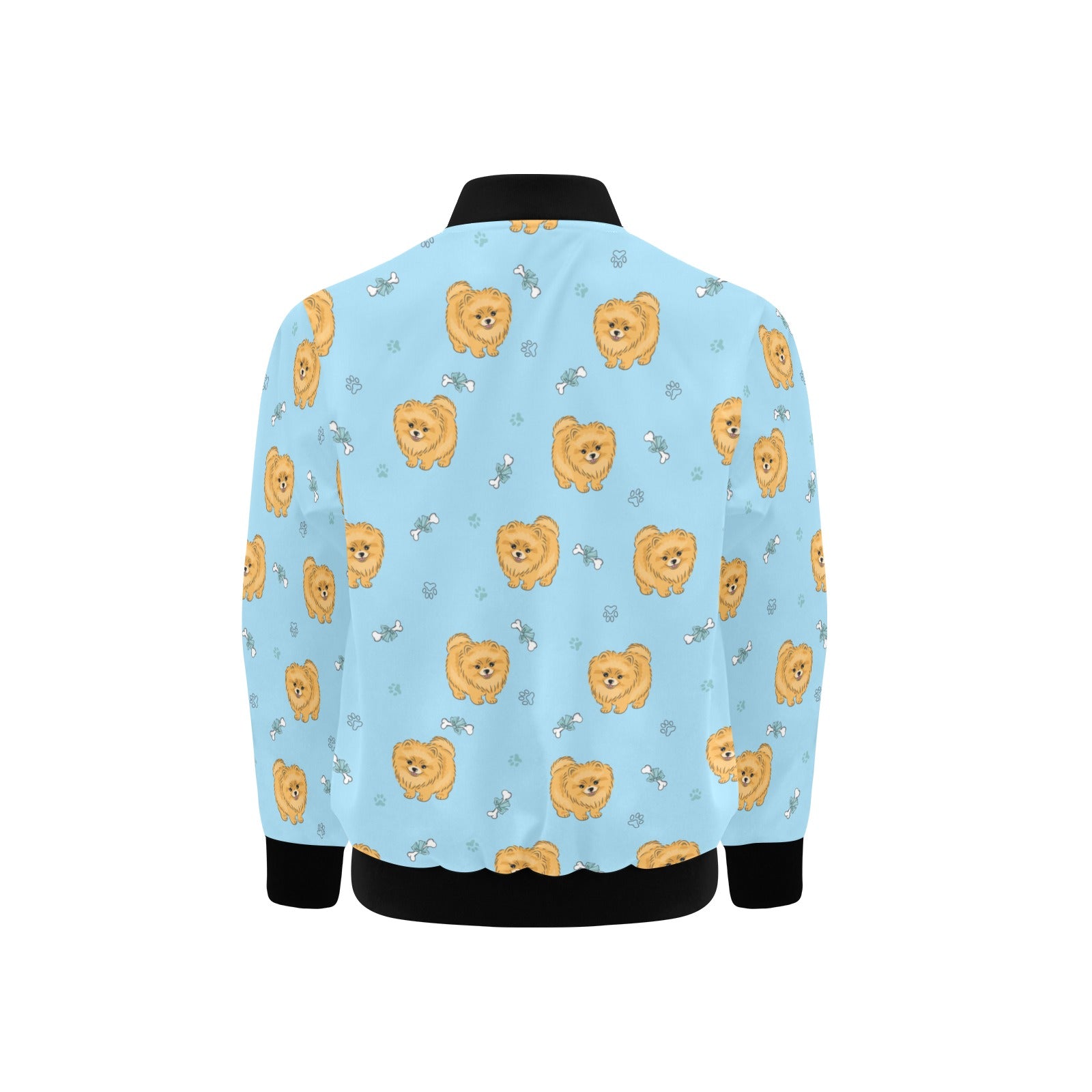 Brown cute pomeranian blue blackground Kids' Boys' Girls' Bomber Jacket