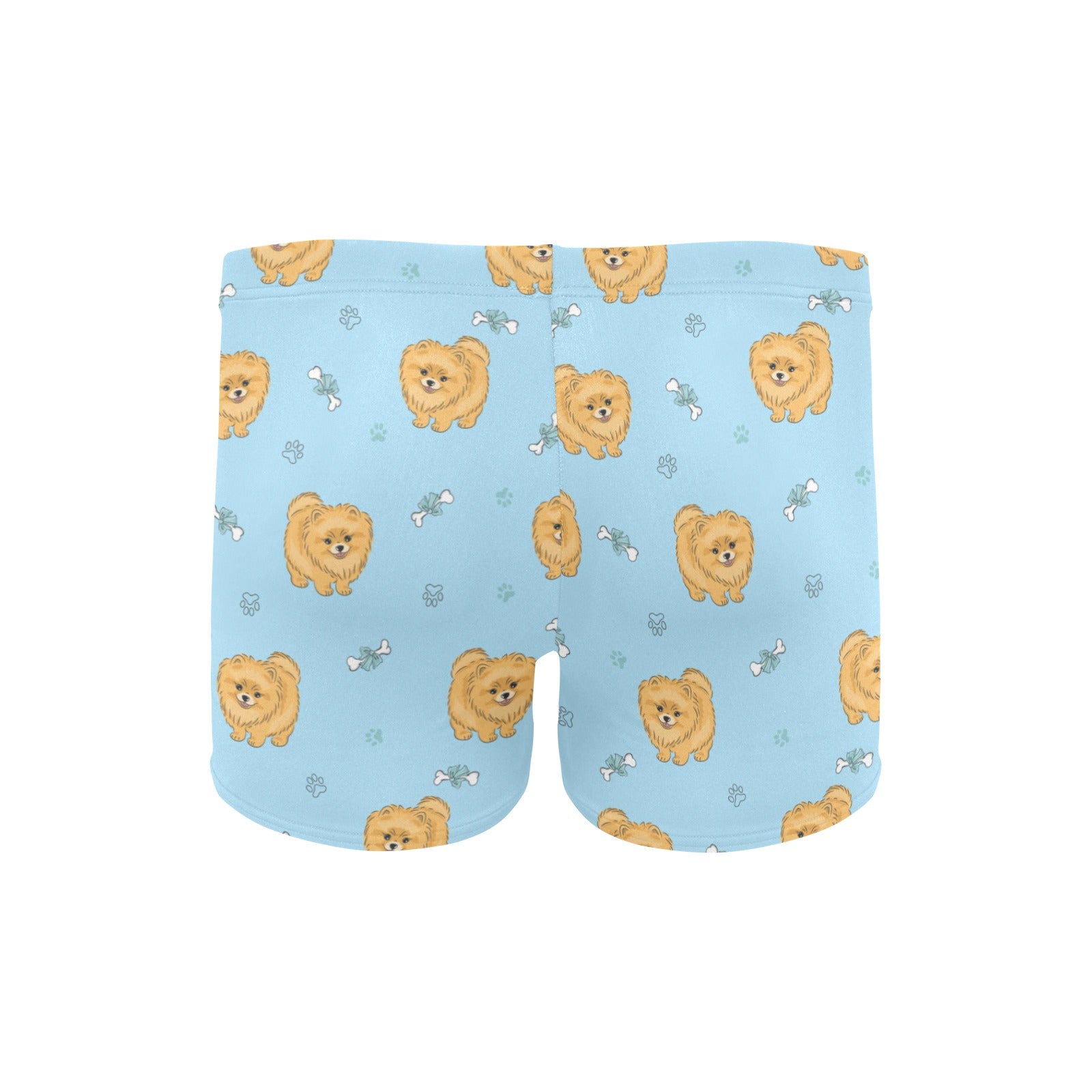 Brown cute pomeranian blue blackground Men's Swimming Trunks
