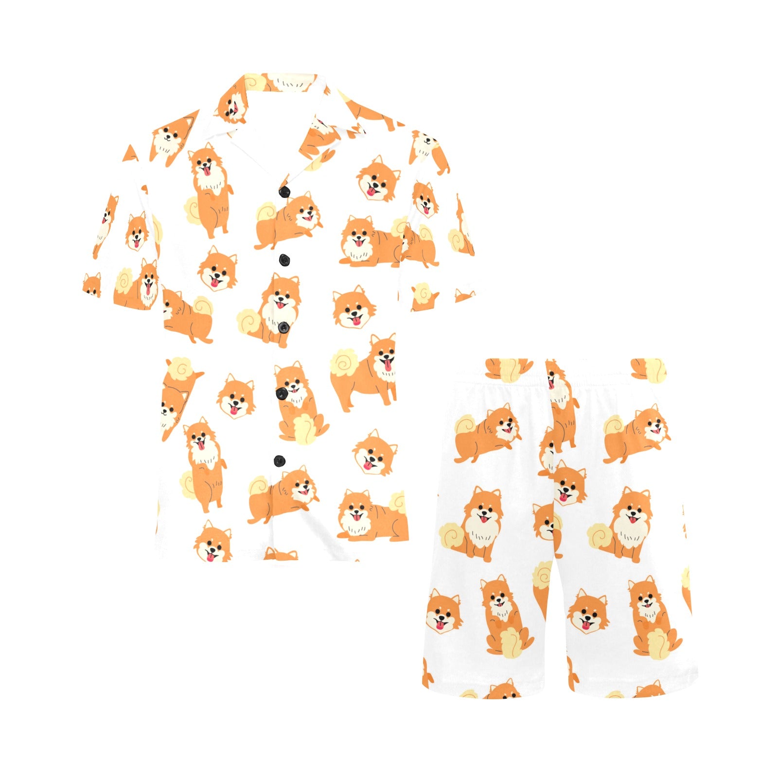 Brown pomeranian pattern Men's V-Neck Short Pajama Set