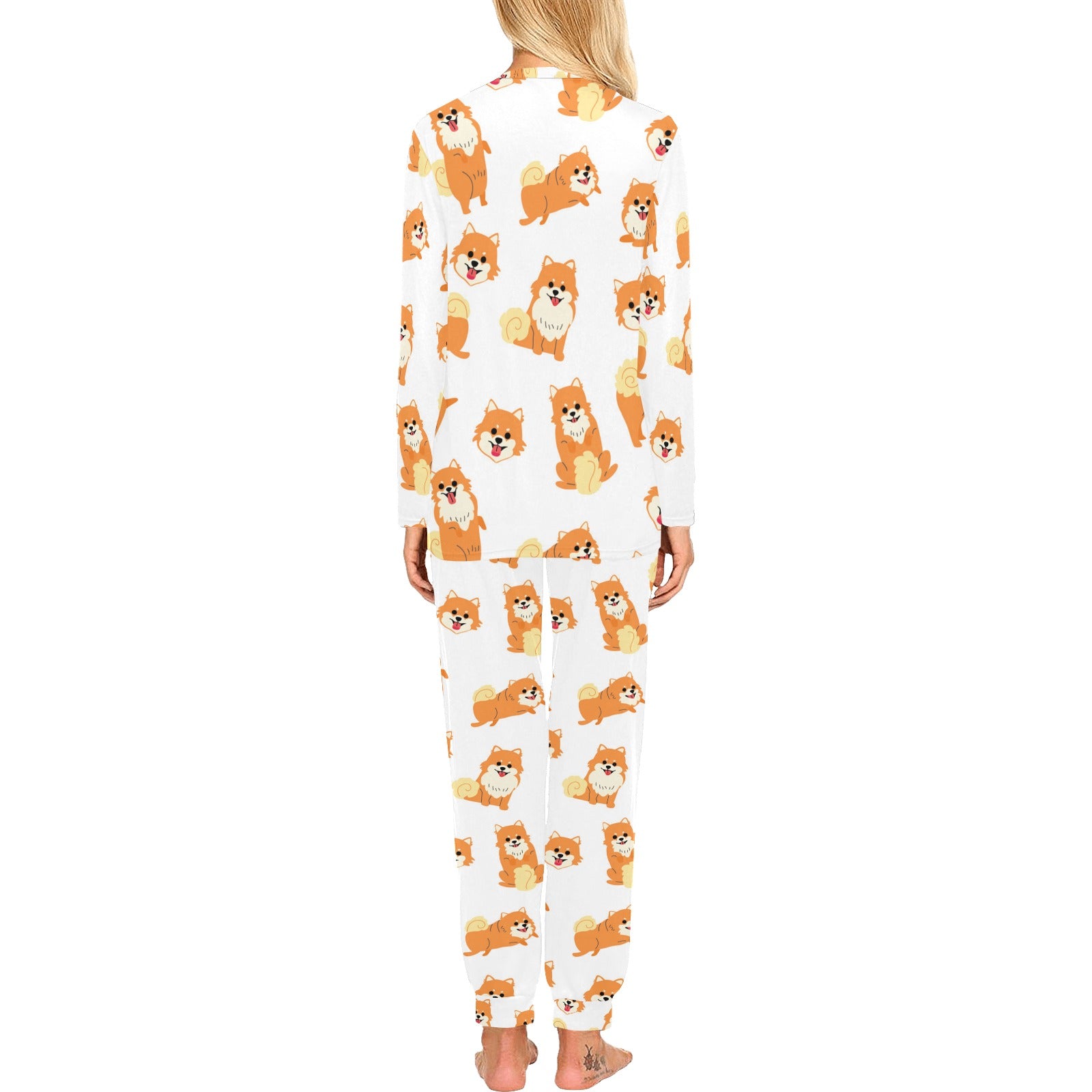 Brown pomeranian pattern Women's All Over Print Pajama Set