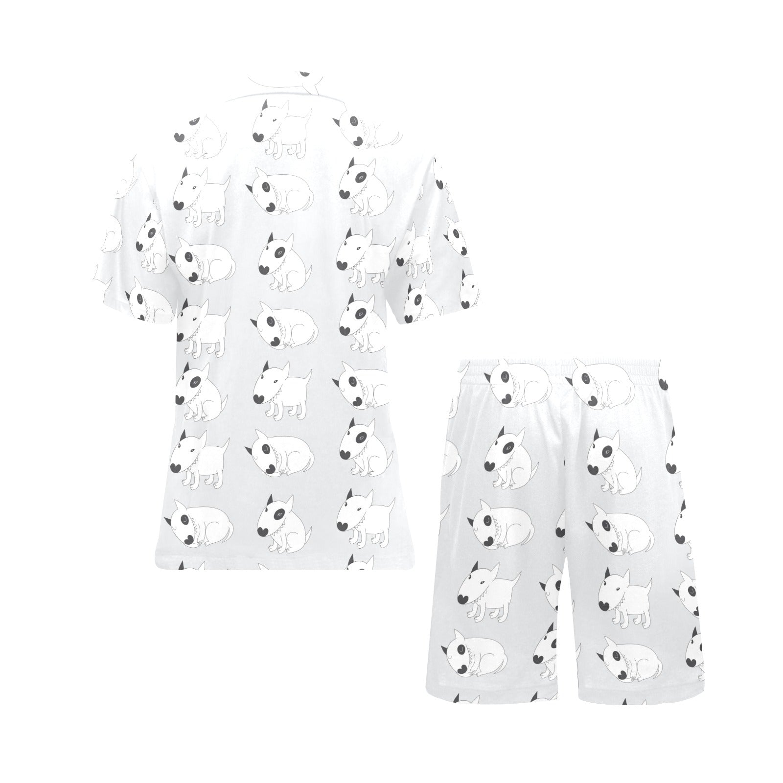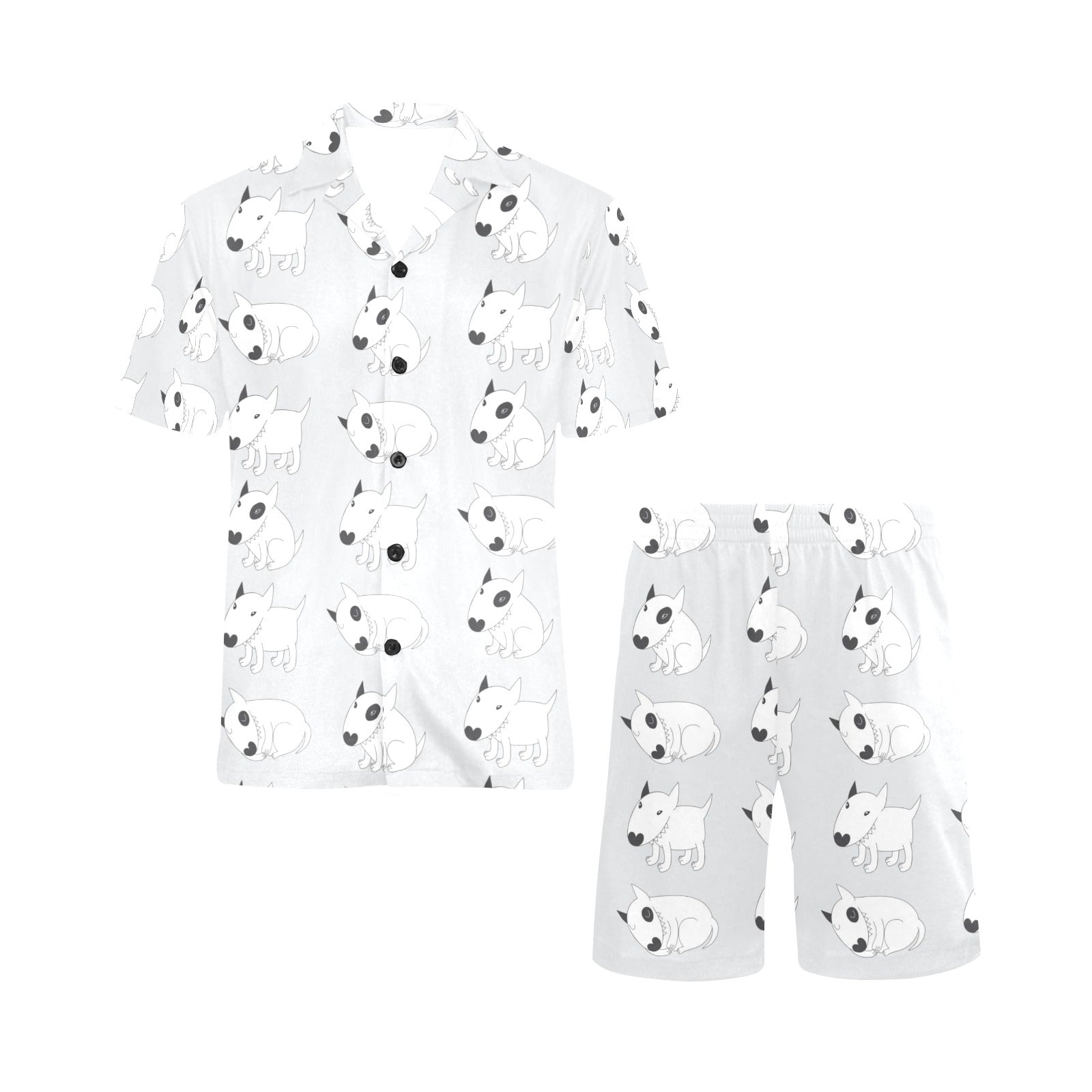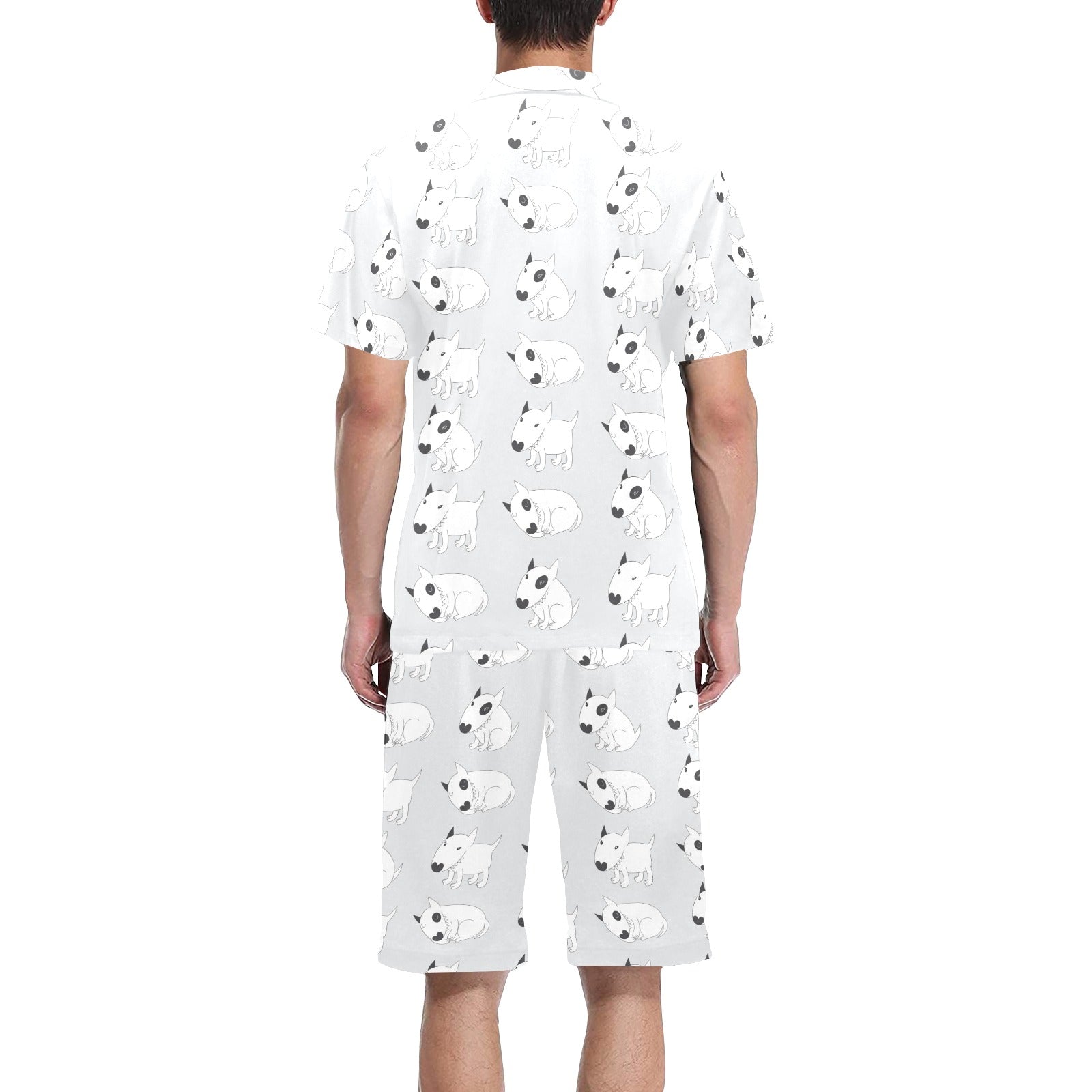Bull Terrier Pattern Print Design 01 Men's V-Neck Short Pajama Set