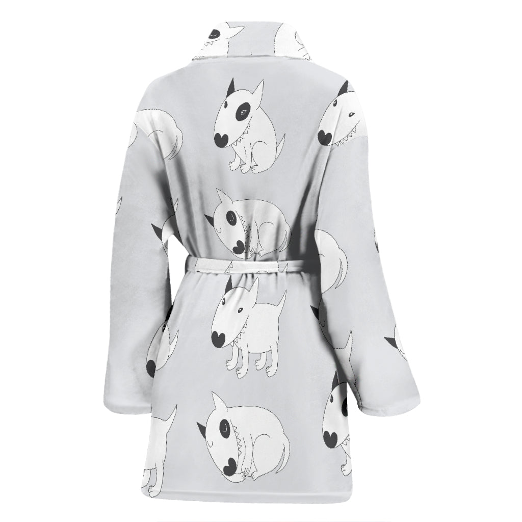 Bull Terrier Pattern Print Design 01 Women's Bathrobe