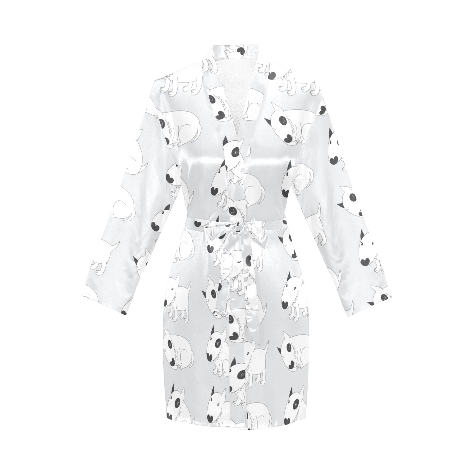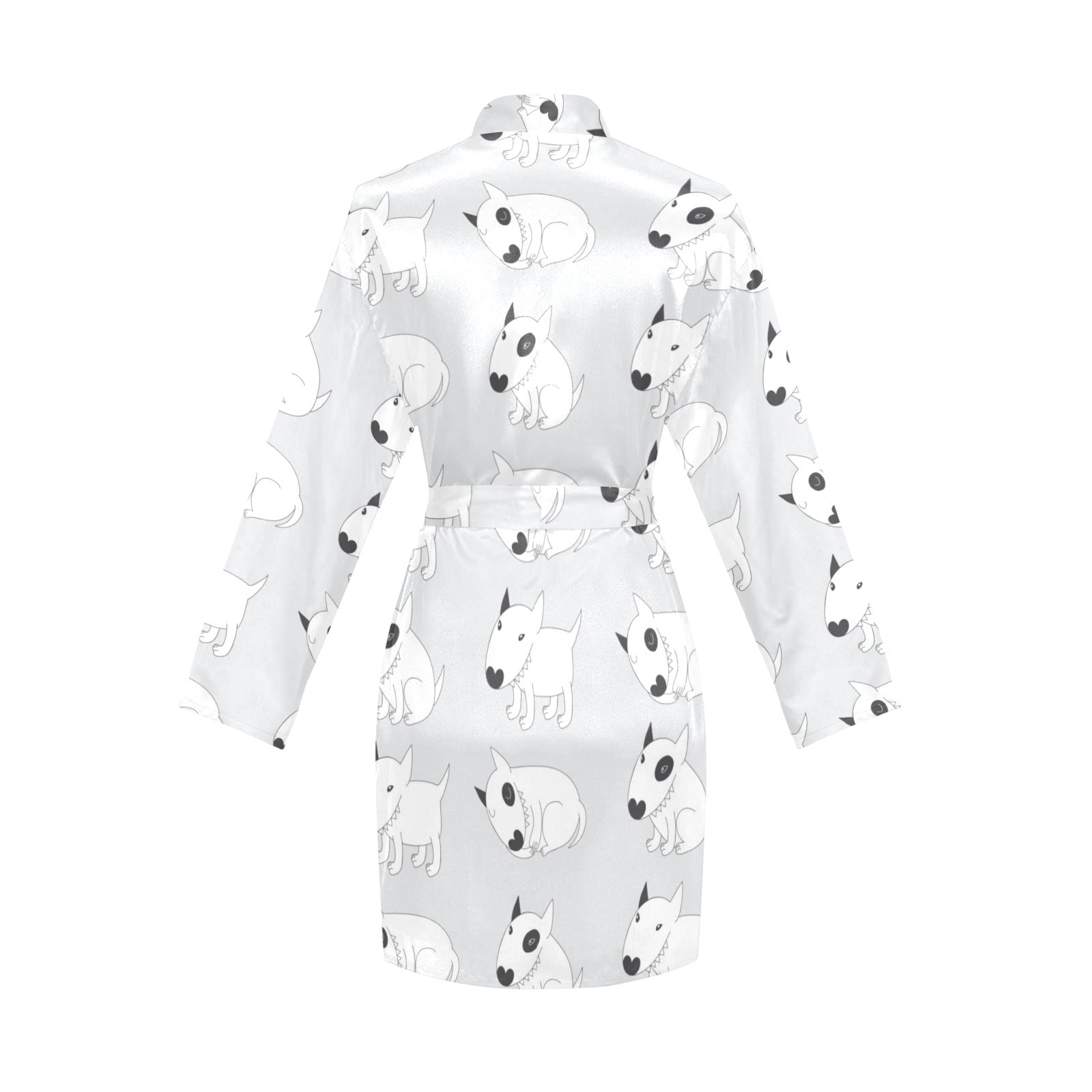 Bull Terrier Pattern Print Design 01 Women's Long Sleeve Belted Night Robe